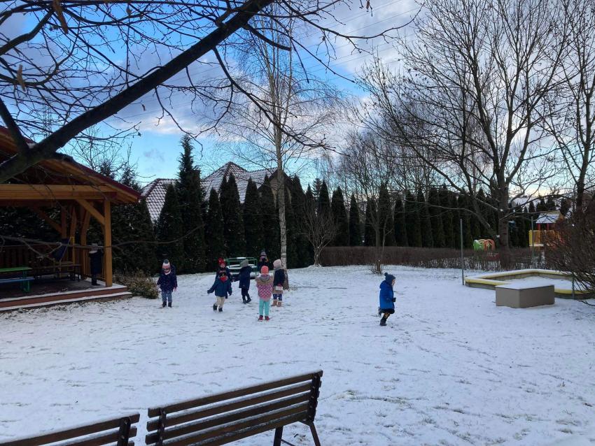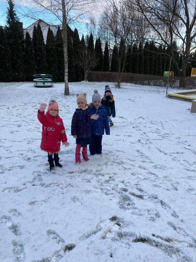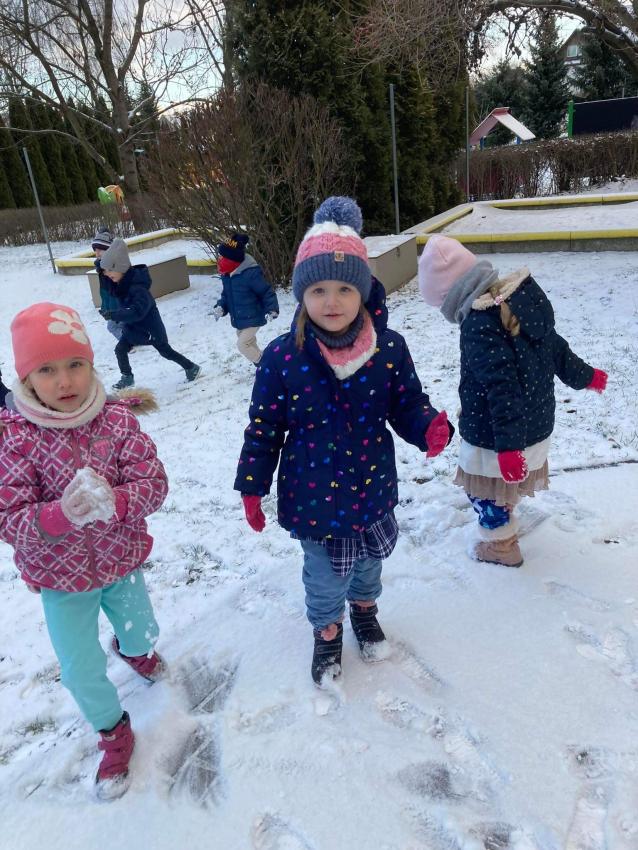 2021-12-21 KOTKI - zimowe zabawy na śniegu w ogrodzie przedszkolnym