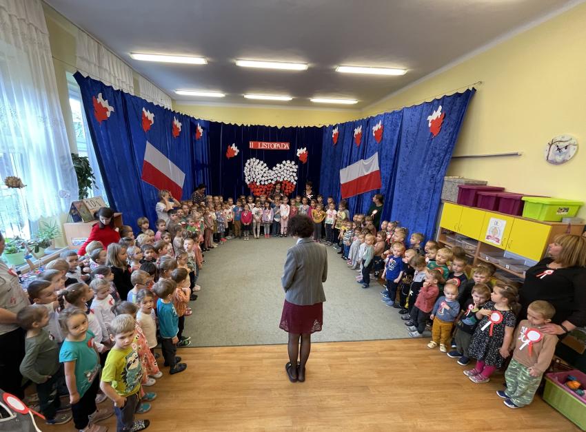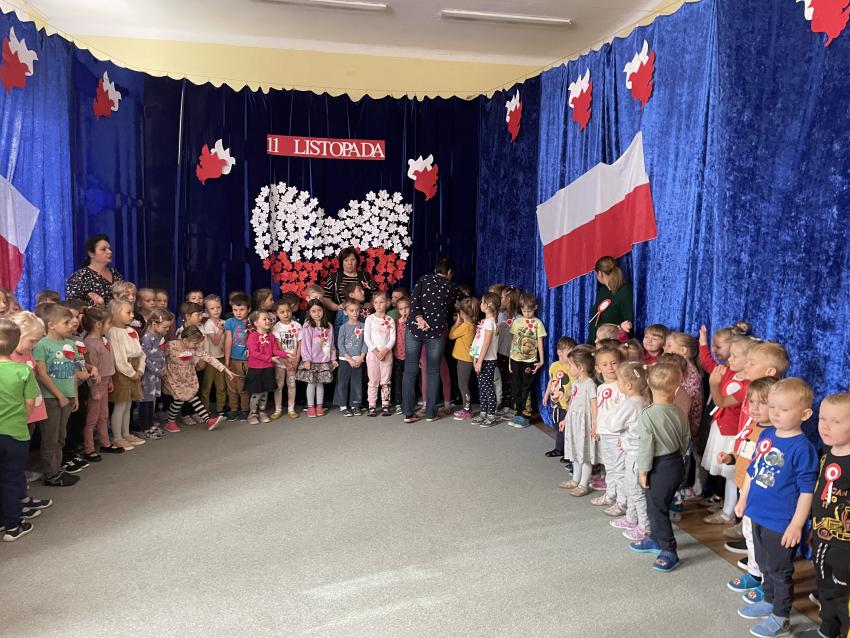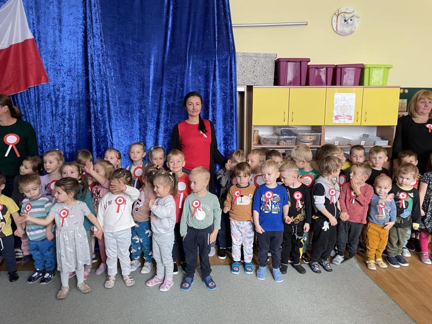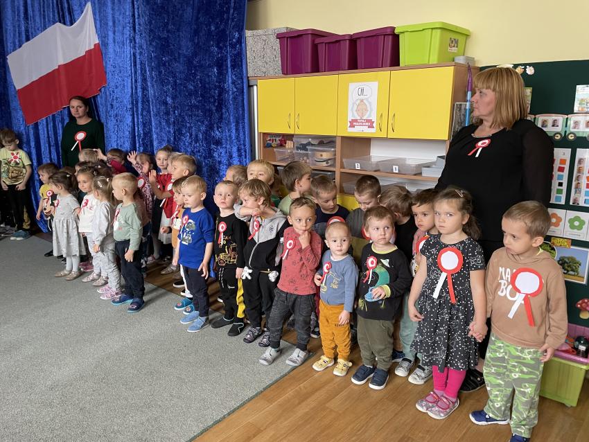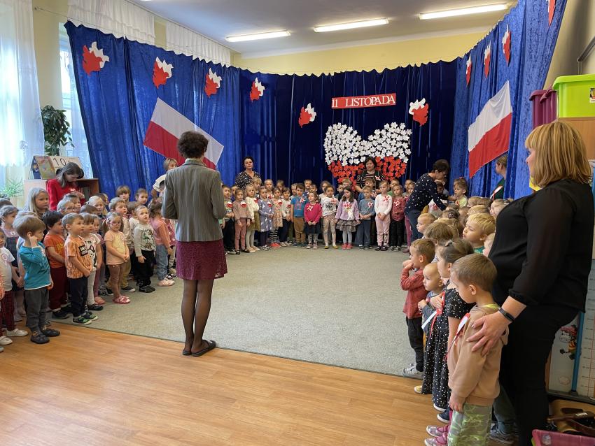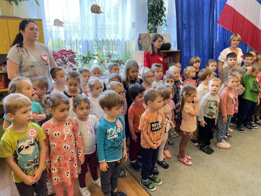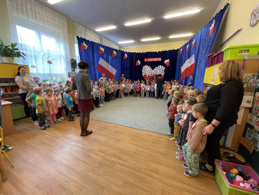 2023-11-10 Przedszkolaki podczas wspólnego śpiewu Hymnu