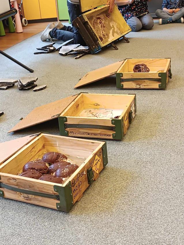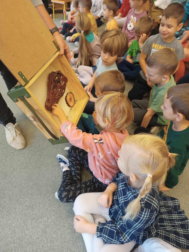 W tym dniu Żabki uczestniczyły w warsztatach o dinozaurach i wykopaliskach paleontologicznych. Przedszkolaki dowiedziały się wiele ciekawych informacji na temat życia dinozaurów oraz przy użyciu nowoczesnych technologii, mogły zobaczyć ?dinozaury? spacerujące po sali przedszkolnej. Coś niesamowitego!