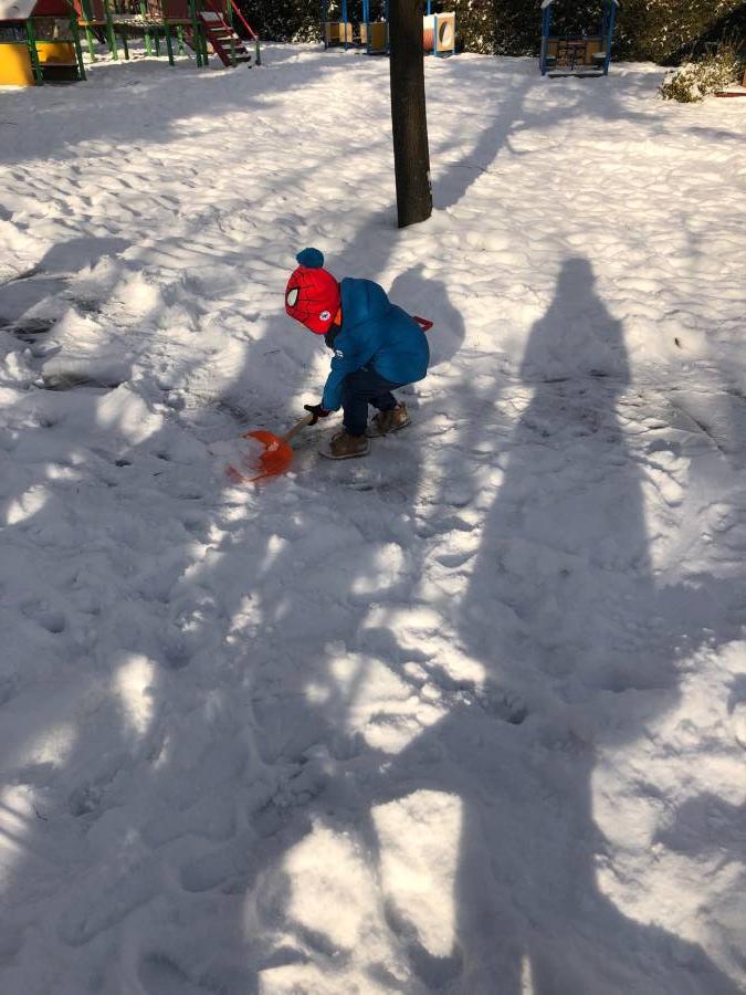 Dzisiaj nareszcie skończył się wielki mróz i smog. Zaświeciło radośnie słoneczko, a my mogliśmy wyjść do naszego przedszkolnego ogrodu.