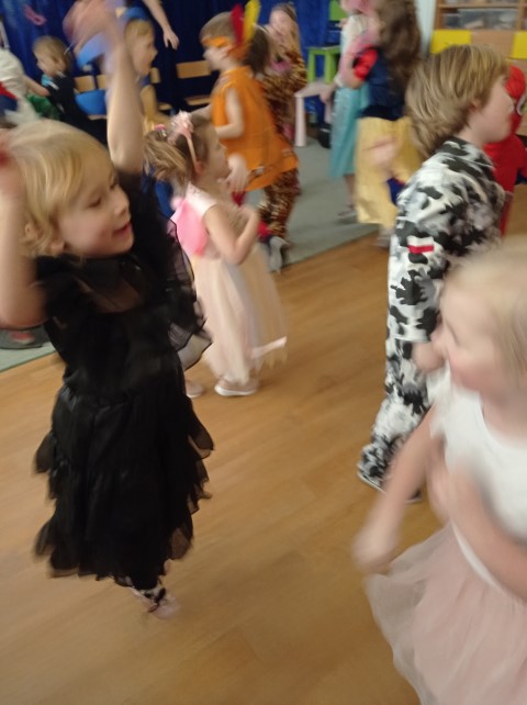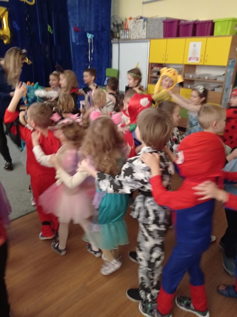 Bal karnawałowy to ogromne przeżycie dla wszystkich dzieci. Każdy z niecierpliwością oczekiwał na jego rozpoczęcie. Dzieci pięknie przebrane świetnie bawiły się na balu, brały udział w zabawach i konkursach. Było bardzo wesoło!