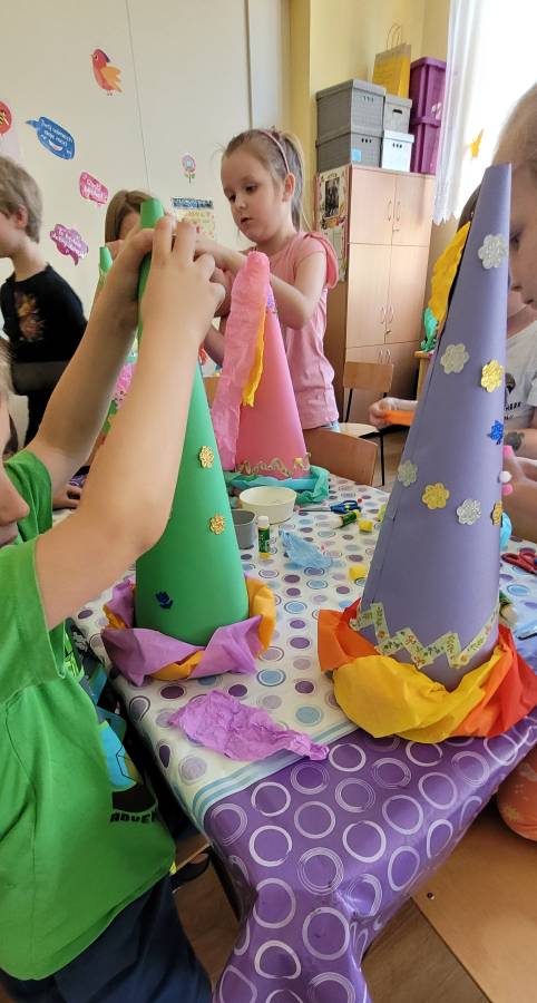 W dniu dzisiejszym grupa Misie uczestniczyła w warsztatach z Lajkonikiem. Dzieci poznały historię z nim związaną, uczestniczyły w zabawie, w której każde z nich zostało na szczęście dotknięte buławą. Na zakończenie przedszkolaki wykonały charakrystyczne dla Lajkonika czapki- turbany.