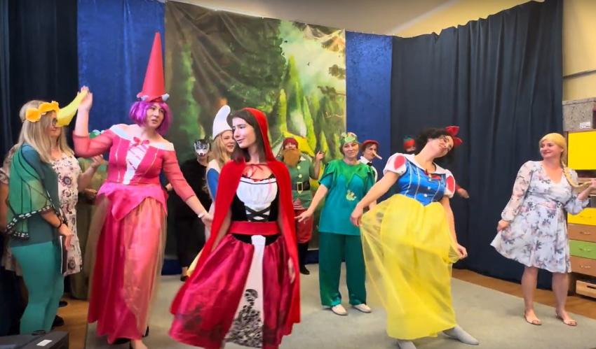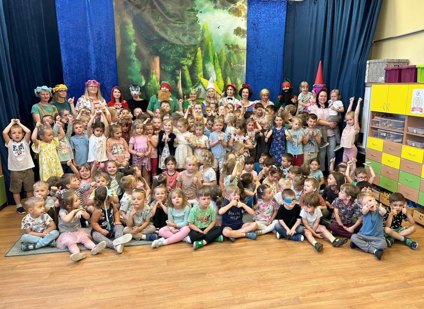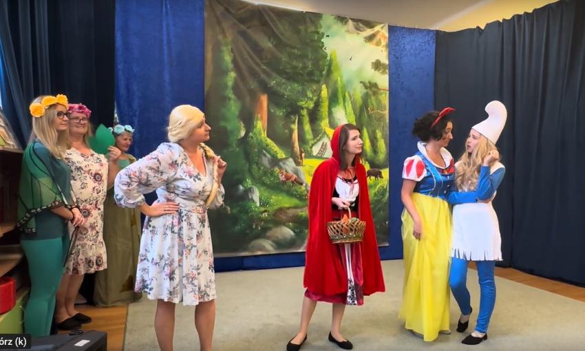 Dzień Dziecka w naszym przedszkolu to jeden z najważniejszych dni w roku. Tegoroczne święto wszystkich dzieci uczczone zostało w wyjątkowy sposób. Poza upominkami zakupionymi z funduszu Rady Rodziców, oraz przepysznym, zdrowym deserkiem, dzieci oglądnęły przedstawienie w wykonaniu nauczycieli. Proszę nam wierzyć - były zachwycone widząc swoje ukochane Panie na scenie.