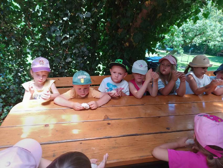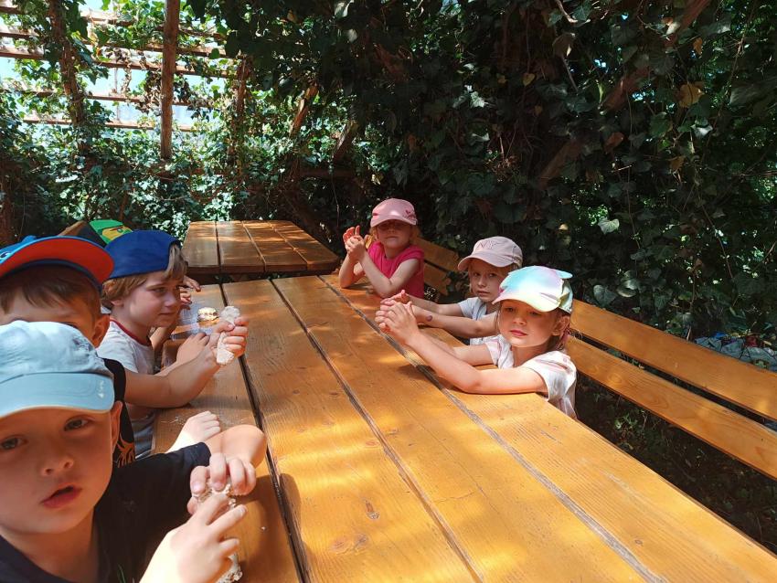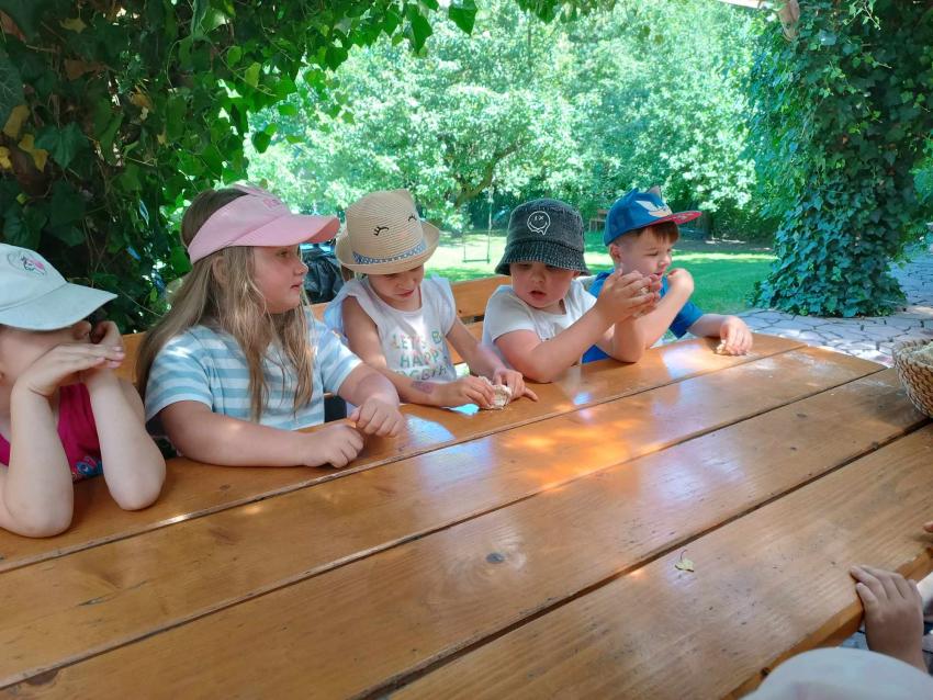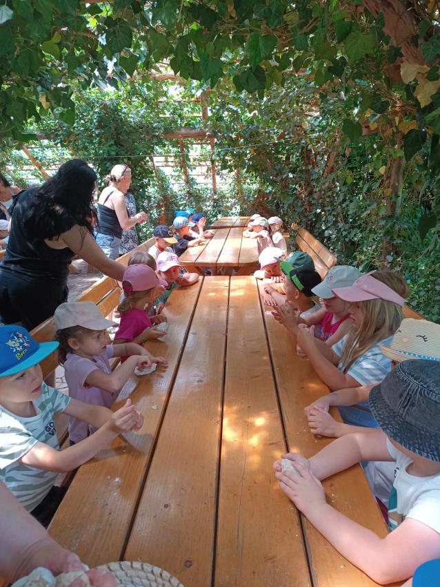 W tym dniu Żabki udały się na wycieczkę do gospodarstwa agroturystycznego w Gruszowie. Dzieci uczestniczyły w zajęciach edukacyjnych Od ziarenka do bochenka, poznały życie pszczół oraz miały okazję zaprzyjaźnić się ze zwierzątkami hodowlanymi. Ostatnim punktem była przejażdżka wozem oraz spacer do lasu. Piękna pogoda dopisała! Wszystkie Żabki z pewnością zapamiętają ten dzień na długo :)
