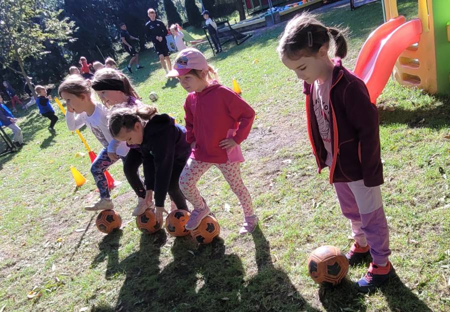 W dniu dzisiejszym grupa Mroweczki obchodziła Dzień Przedszkolaka. Dzień rozpoczęliśmy na wesoło zdjęciami ze śmiesznymi gadżetami. Następnie w sali zrobiliśmy rozgrzewkę podczas aerobiku przy muzyce. Główną atrakcją tego dnia były zajęcia sportow prowadzone przez trenerów z Cracovia Kids w ogrodzie przedszkolnym. Dziękujemy mamie Bartusia za organizację. Przedszkolaki świetnie się bawiły oraz sprawnie wykonywały wszystki aktywności