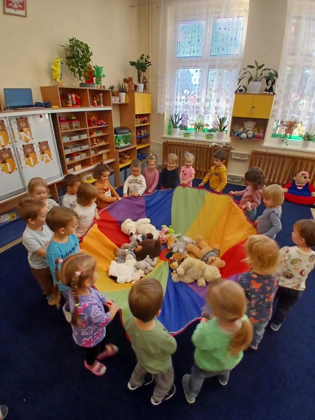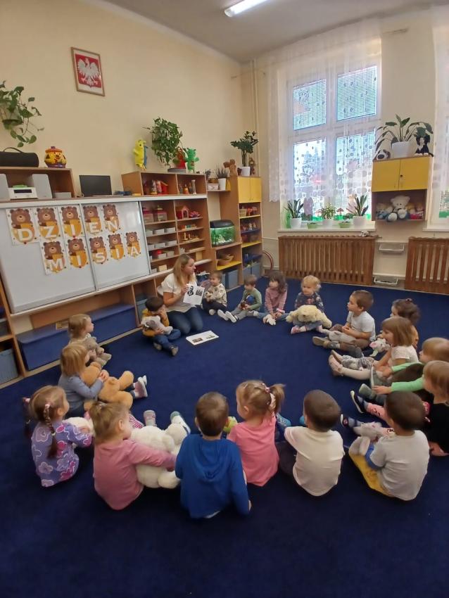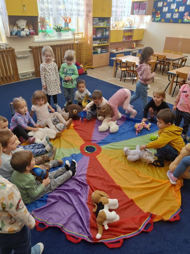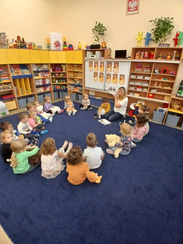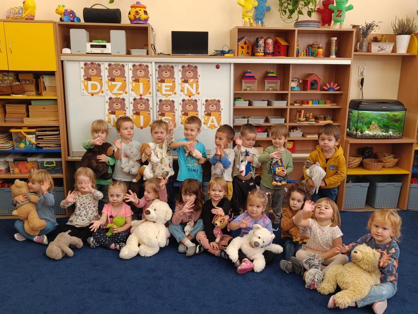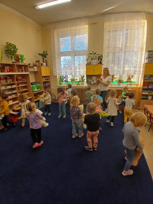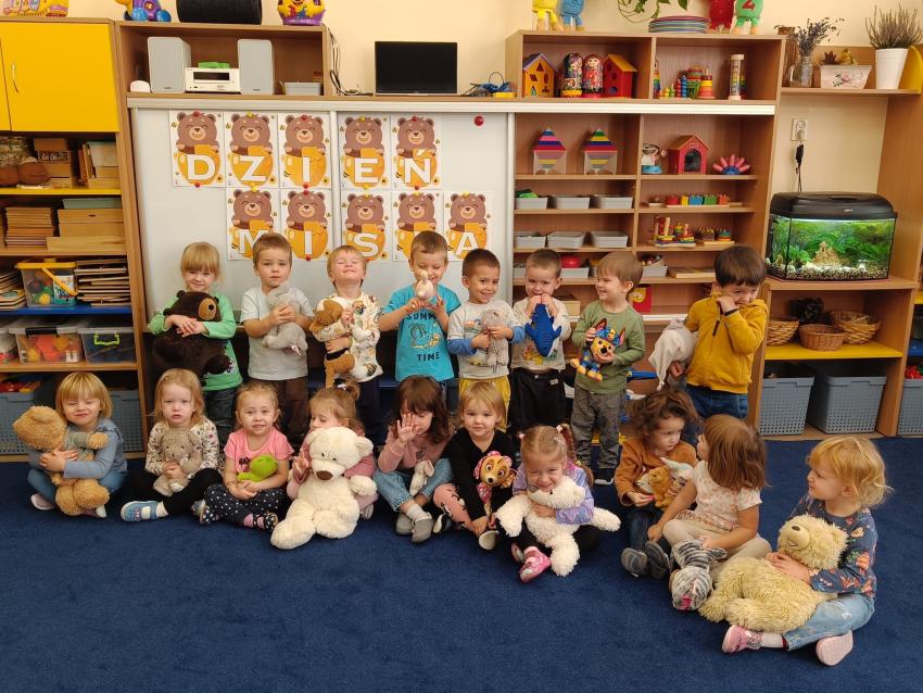 Dnia 17.10 dzieci z grupy Pszczółek obchodziły Dzień Misia. Były tańce, zabawy paluszkowe, zabawy z chustą animacyjną oraz pyszny, słodki poczęstunek przygotowany przez Mamę Leona :)
