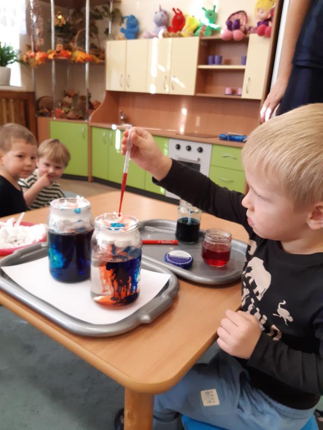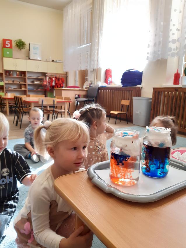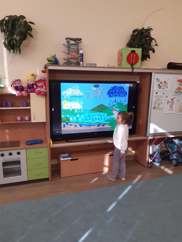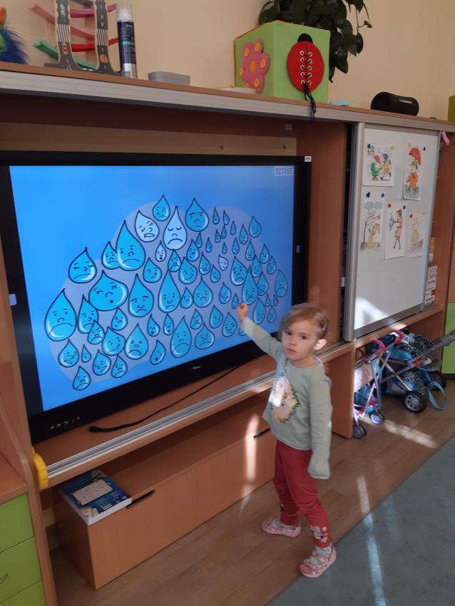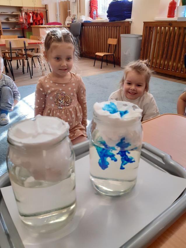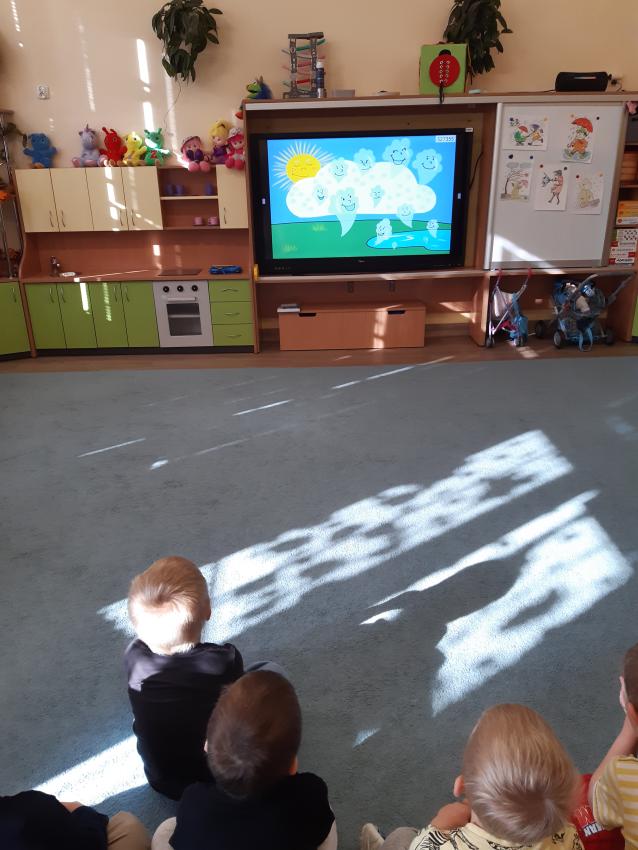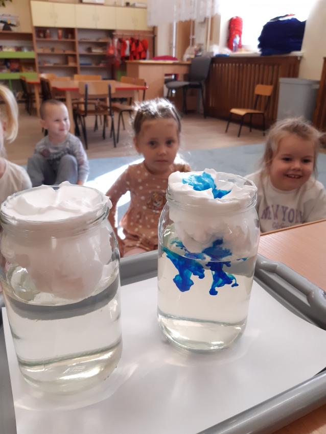 Skąd się bierze deszcz ,i kiedy z chmur pada deszcz? Szukaliśmy odpowiedzi na to pytanie za pomocą prezentacji multimedialnej oraz obserwacji eksperymentu "Kolorowy deszcz" .Dzieci dowiedziały się również komu potrzebny jest deszcz i jak wpływają opady na przyrodę .Badaliśmy również właściwości fizyczne wody- szukając odpowiedzi na pytanie "Jaka jest woda ?".Największą ciekawość wzbudziła obserwacja eksperymentu "Kolorowy deszcz" ,oraz możliwość podjęcia samodzielnej próby eksperymentowania .