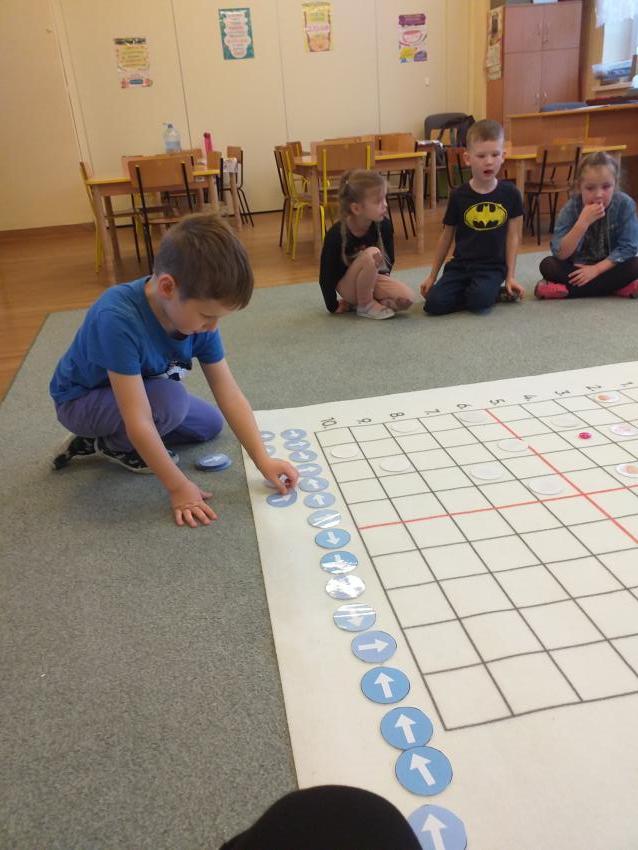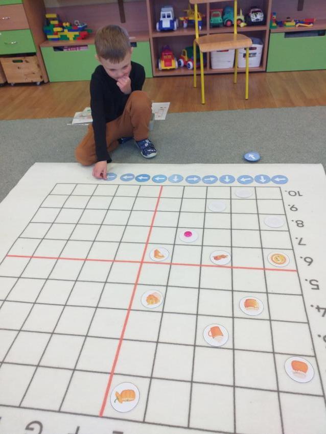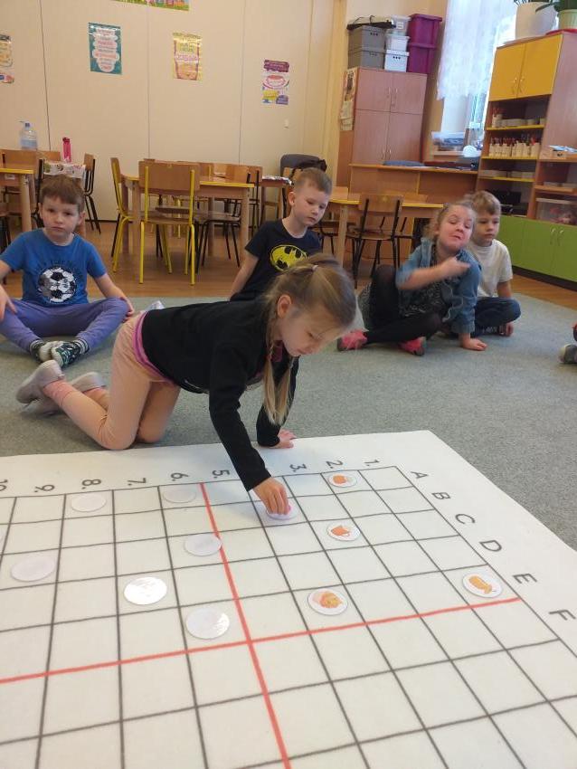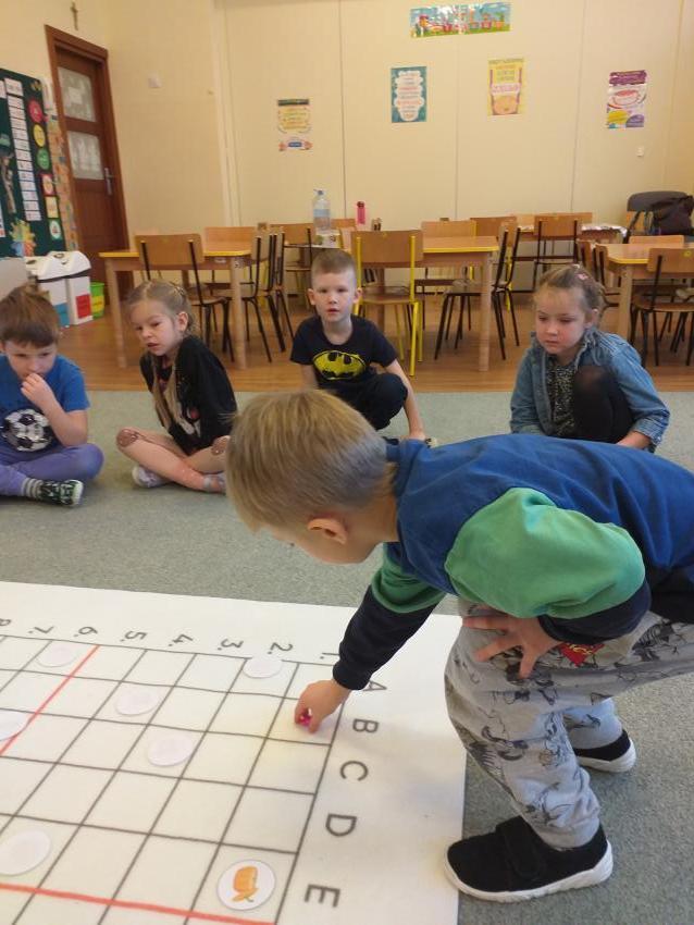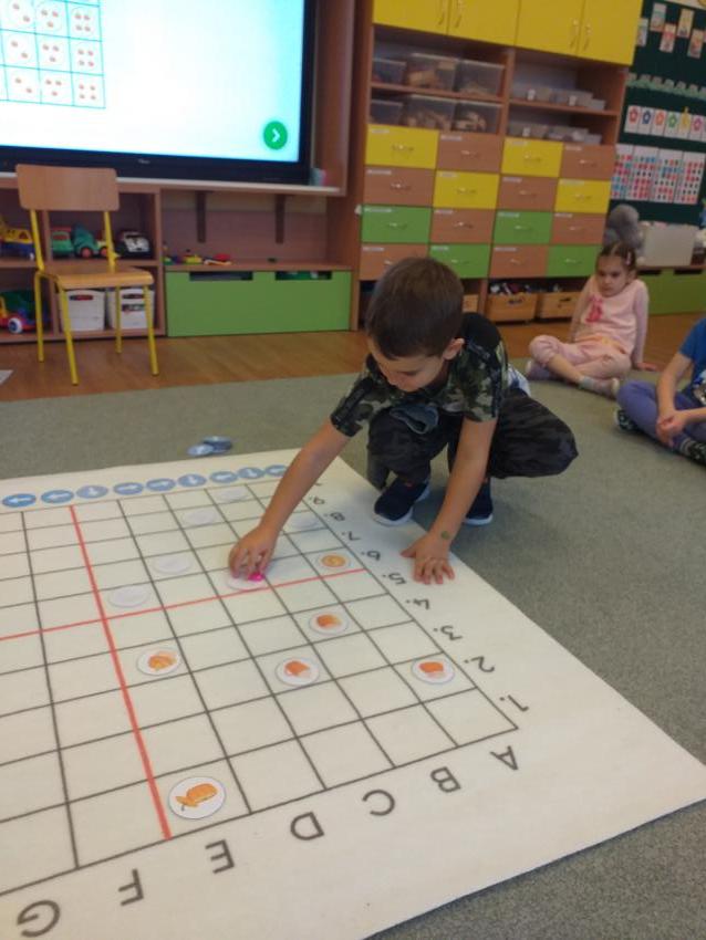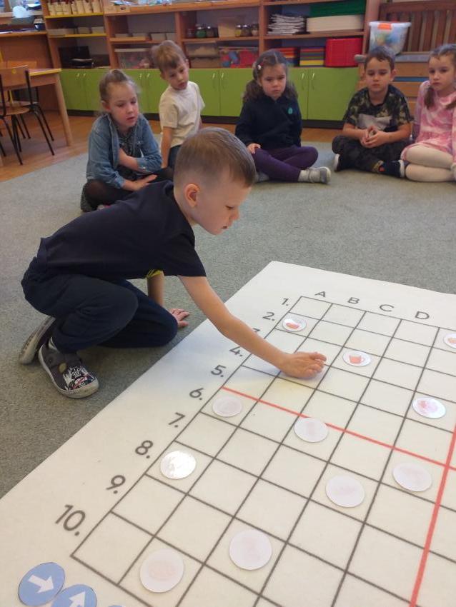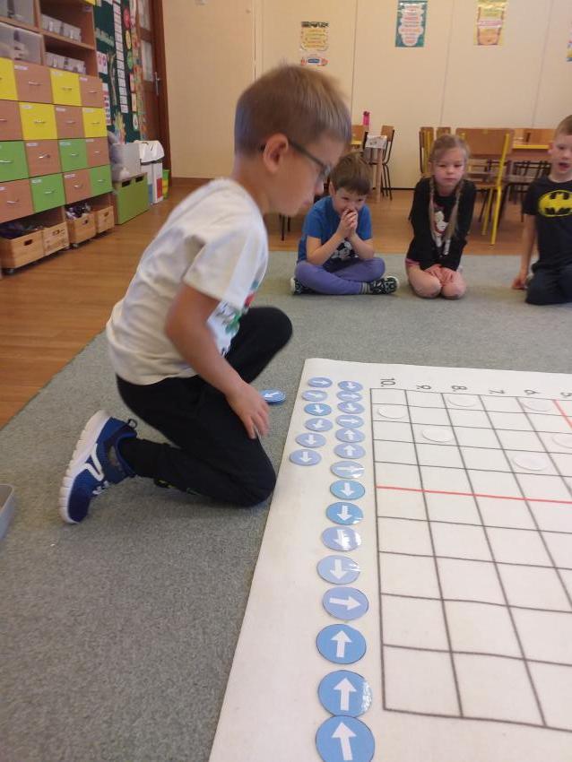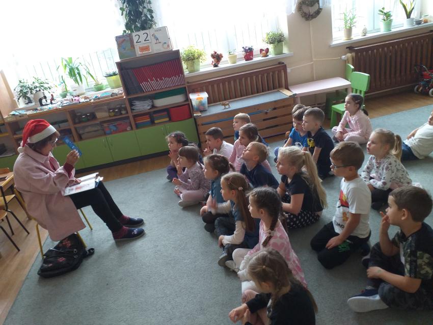 W piątek na zajęciach kontynuowaliśmy zabawy w kodowanie. Rozwijaliśmy logiczne myślenie i ćwiczyliśmy naszą wytrwałośc podczas tworzenia kodu do ułożonych elementów na macie do kodowania. Dzieci z dużym skupieniem szukały odpowiedniego ruchu strzałki i z cierpliwością monitorowały posunięcia kolegów. Na koniec udało się ułożyć właściwy kod. Po II śniadaniu gościliśmy Panią z Klubu Seniora Plus, która w ciekawy sposób przybliżyła postać Świętego Mikołaja - biskupa. Przedszkolaki z zainteresowaniem słuchały czytania i wykazały się też sporą wiedzą na tematy związane ze zwyczajami Świąt Bożego Narodzenia.