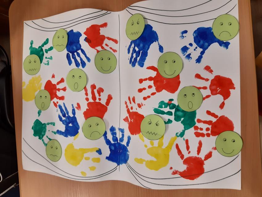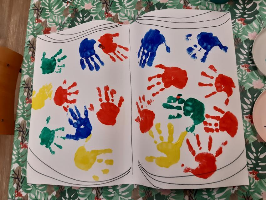 Rozbudzenie zainteresowań czytelniczych wśród dzieci . Rozumienie potrzeby okazywania szacunku wobec innych. Wskazywanie wartościowych społecznie zachowań (życzliwość , pomoc, kultura zachowania.) Dostrzeganie wartości : dobro, odwagi, przyjaźni ,pomocy tego dzieci uczyły się na podstawie znanych i lubianych bajek i opowiadań . Wykonały wspólną pracę plastyczną ?Książka to źródło wartości i uczuć" ( radość, smutek ,złość, wrażliwość) stemplowały dłonią i farbą w dobranych kolorach .Bo książka to również źródło rożnych emocji.