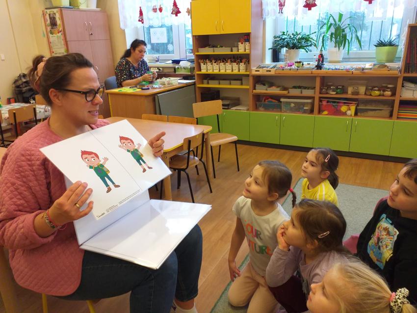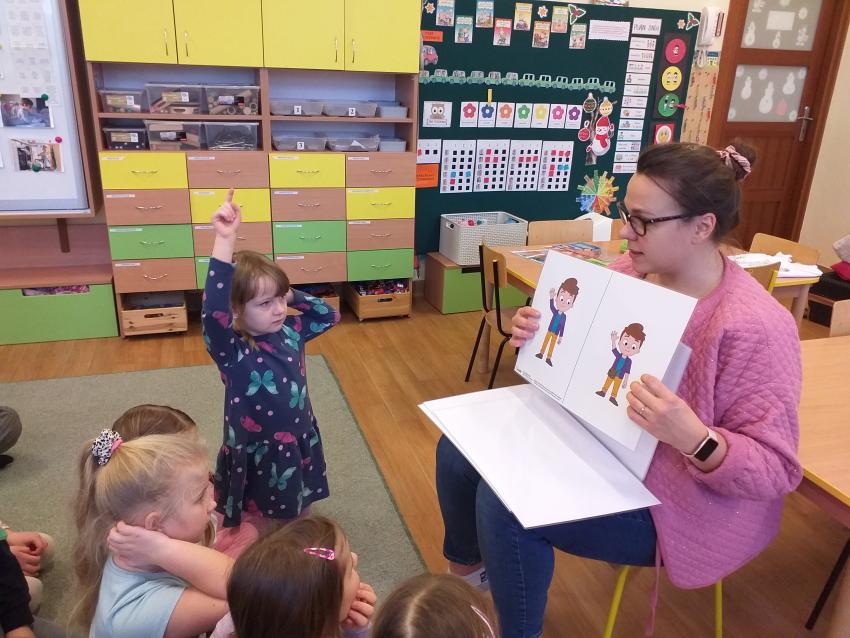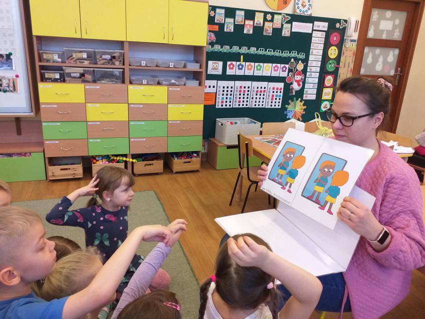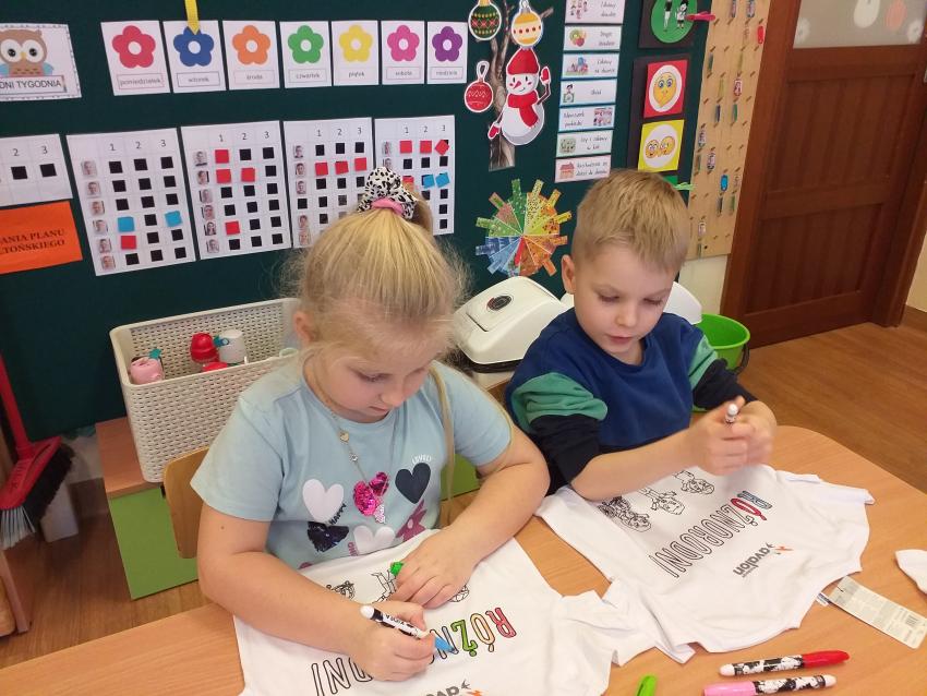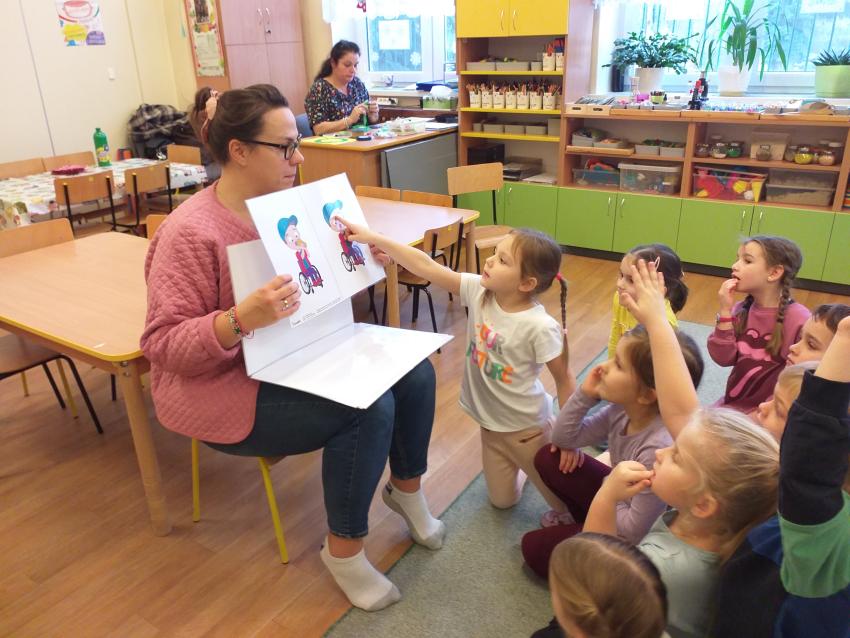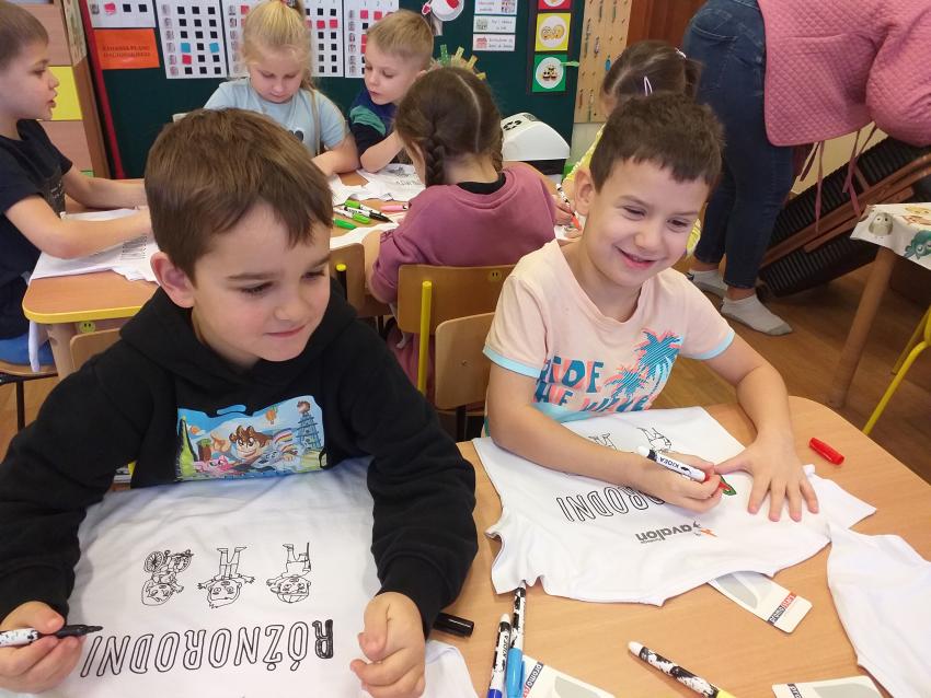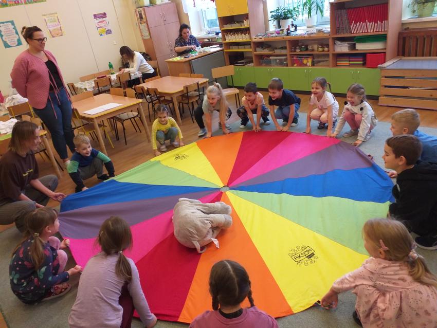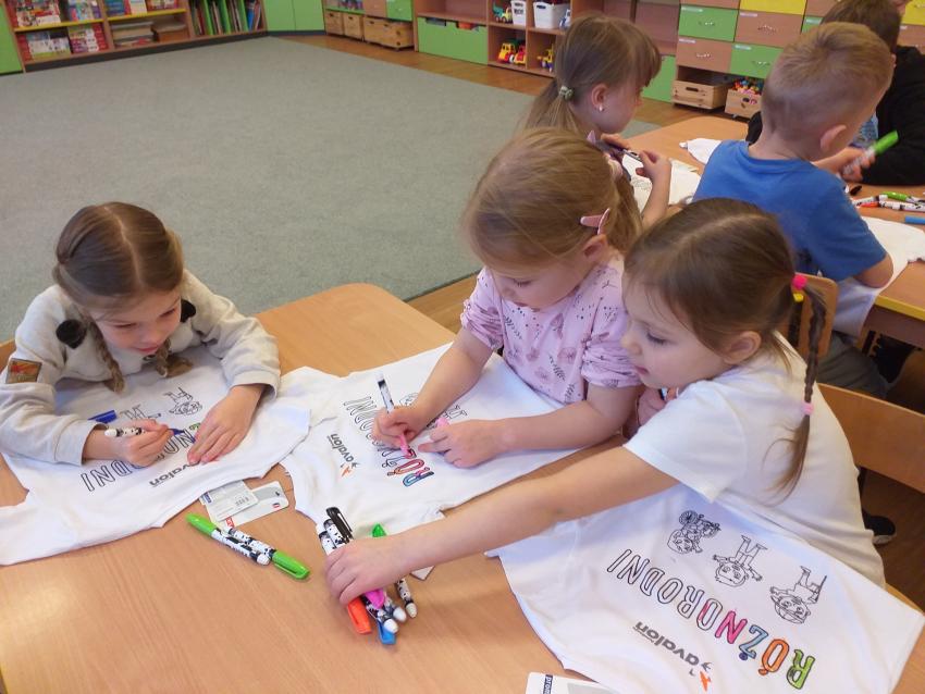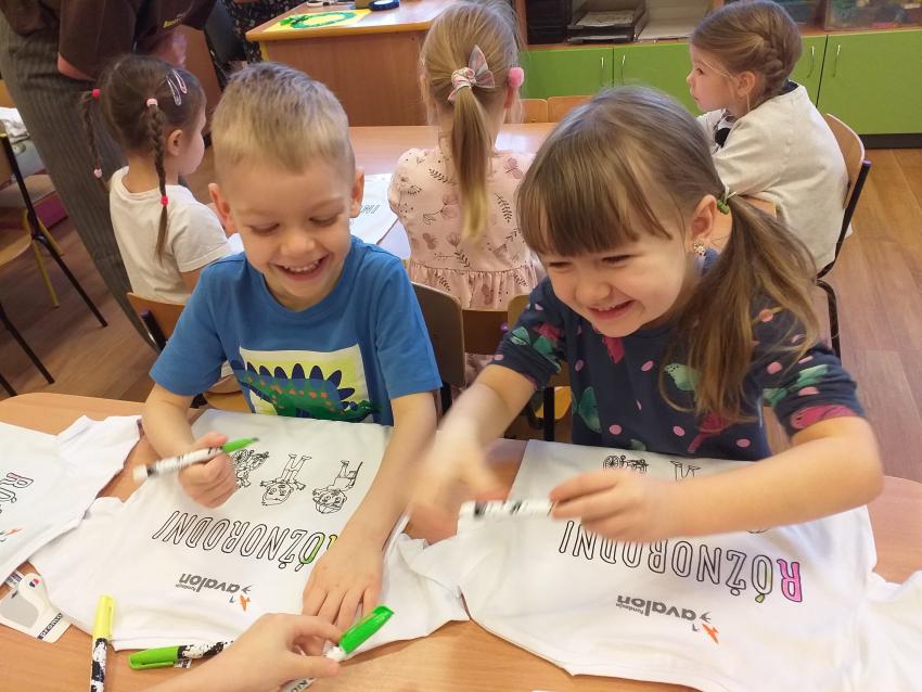 W dniu dzisiejszym w grupie MRÓWECZKI odbyły się zajęcia w ramach realizacji projektu RÓŻNORODNI. Przedszkolaki dowiedziały się, że choć każdy z nas jest inny, pięknie się różnimy i dlatego właśnie jesteśmy wyjątkowi. Dzieci z zainteresowaniem wysłuchały opowieści w formie teatrzyku o Słoniu Elmerze, który w przystępny sposób pokazuje jak budować poczucie własnej wartości i tolerancji do różnorodności. Następnie przedszkolaki na kolorowych ilustracjach wskazywały różnice pomiędzy postaciami, nabywając wiedzę o zagadnieniach związanych z postrzeganiem osób z niepełnosprawnościami. Na koniec zajęć wypełniały kolorowymi pisakami napis RÓŻNORODNI na koszulkach, które otrzymały na pamiątkę spotkania. Dzieci bardzo aktywnie i z dużą uwagą uczesniczyły w zajęciach.