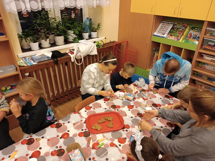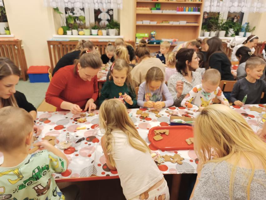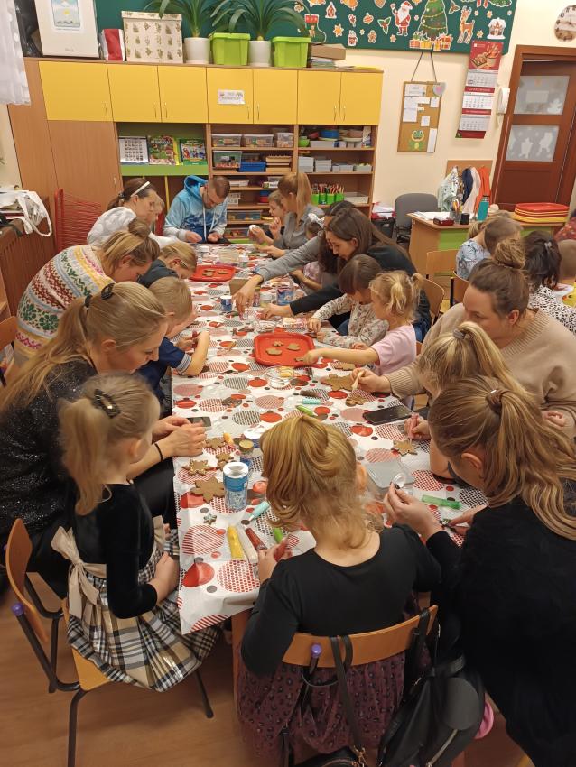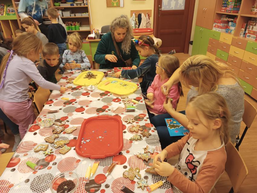 Przygotowując się do magicznego czasu Świąt, w grupie Żabek nie mogło zabraknąć warsztatów świątecznych Dzieci z Rodzicami. W tym roku wszyscy wspólnie śpiewaliśmy piosenki i kolędy oraz ozdabialiśmy pierniczki. Dziękujemy Mamie Kajtusia za przygotowanie słodkości do dekorowania :)