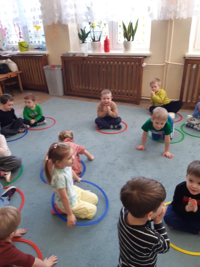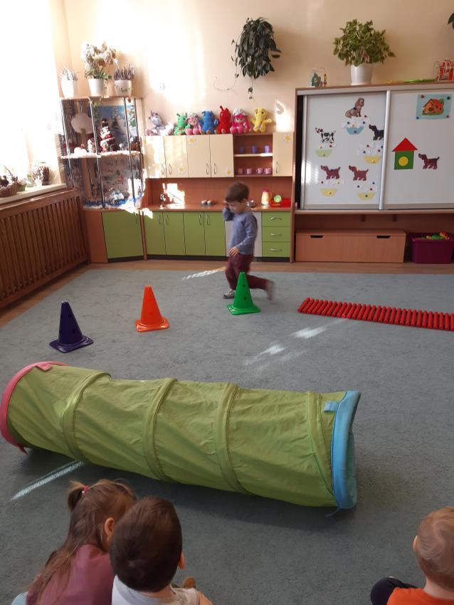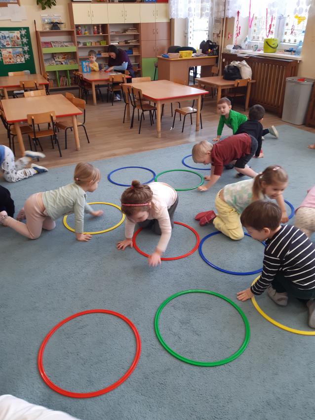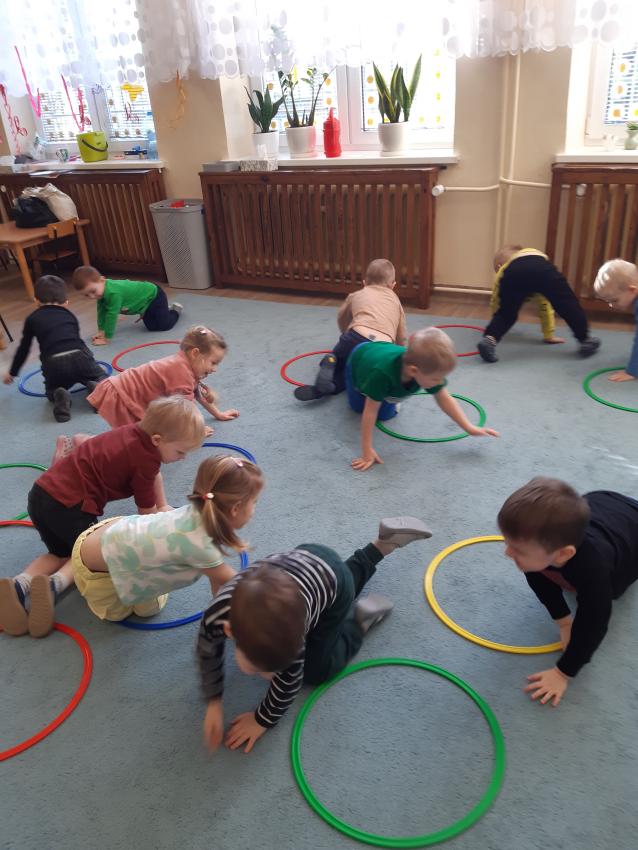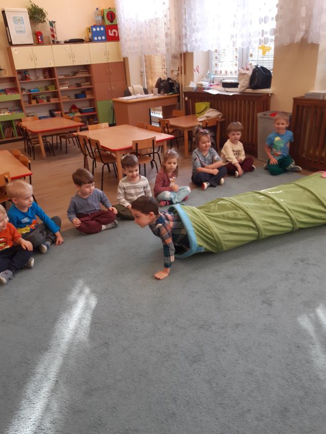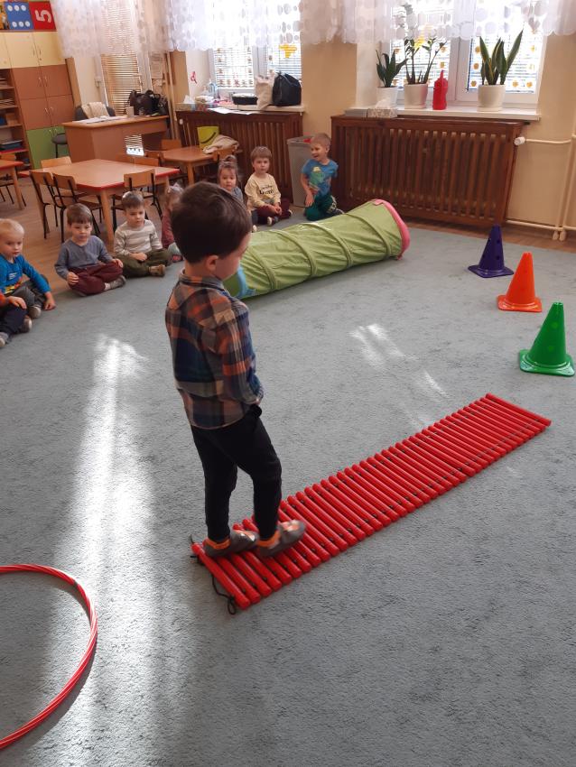 2025-02-20 BIEDRONKI Zabawy ruchowo- gimnastyczne - tor z przeszkodami.