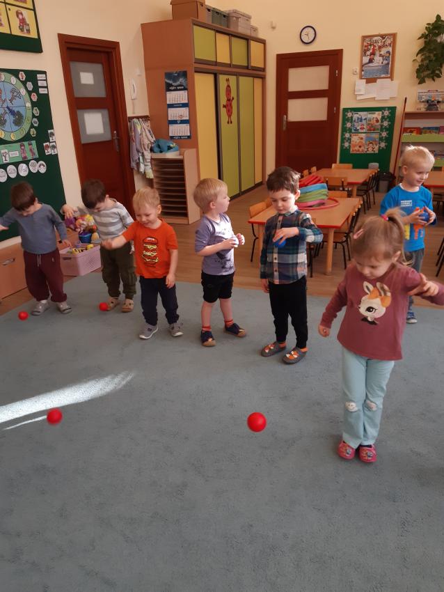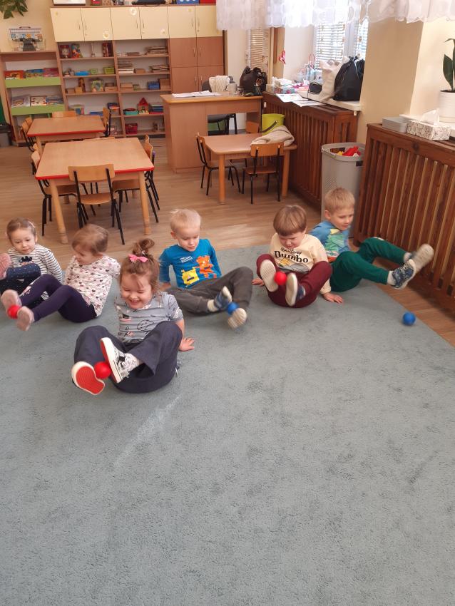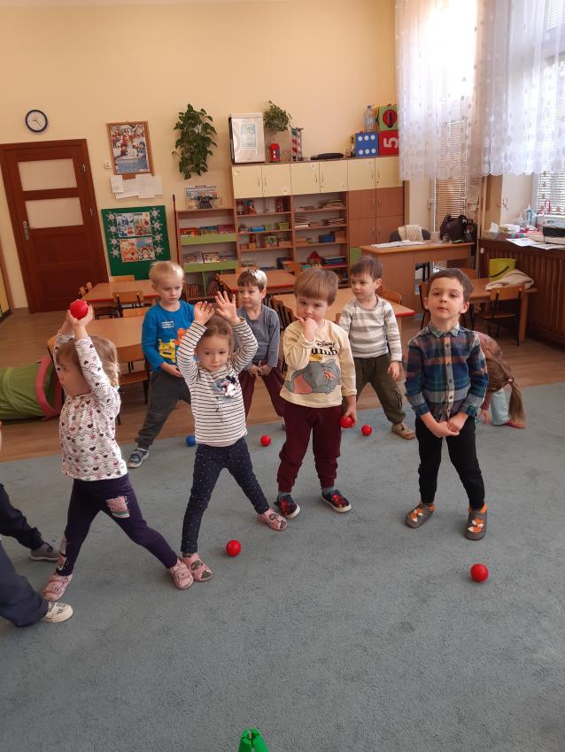 Biedronki wykonywały ćwiczenia gimnastyczne z wykorzystaniem piłeczek, obręczy ,oraz pokonywały tor z przeszkodami. Wykazały się zwinnością, doskonaliły koordynację ruchową , z uwagą słuchały poleceń nauczyciela. Doskonaliły umiejętności odporności emocjonalnej i cierpliwości. A najważniejsze że doskonale się bawiły.
