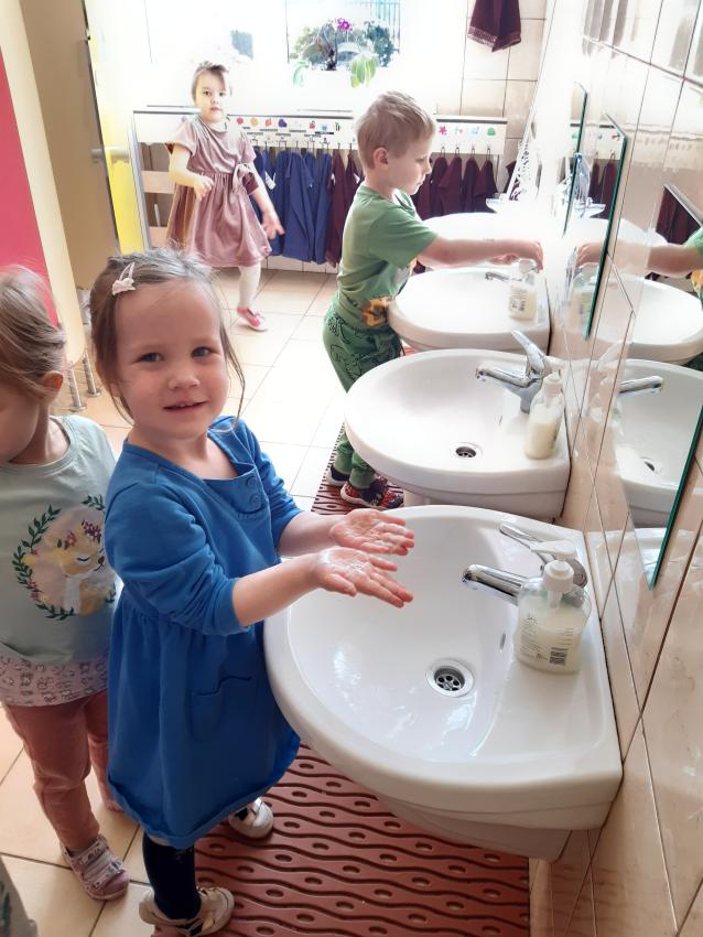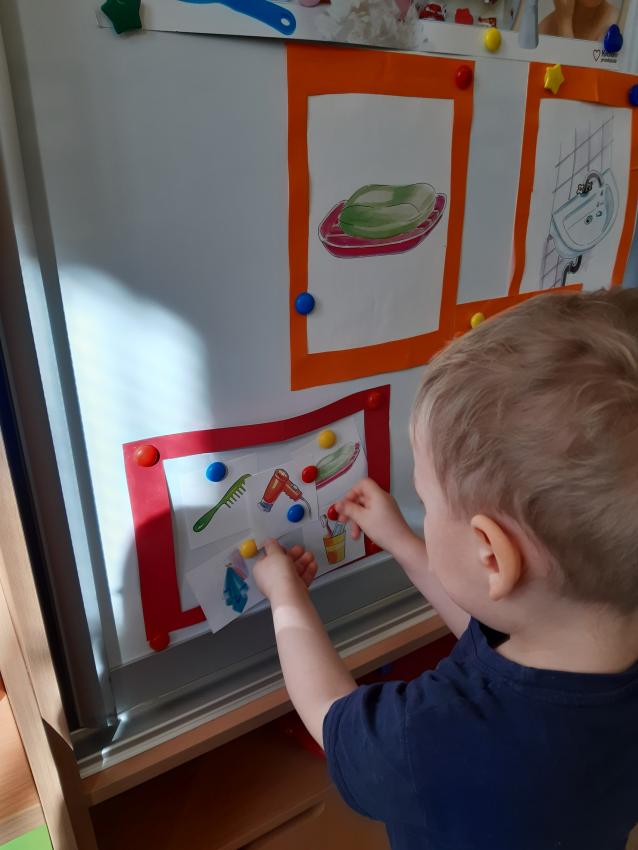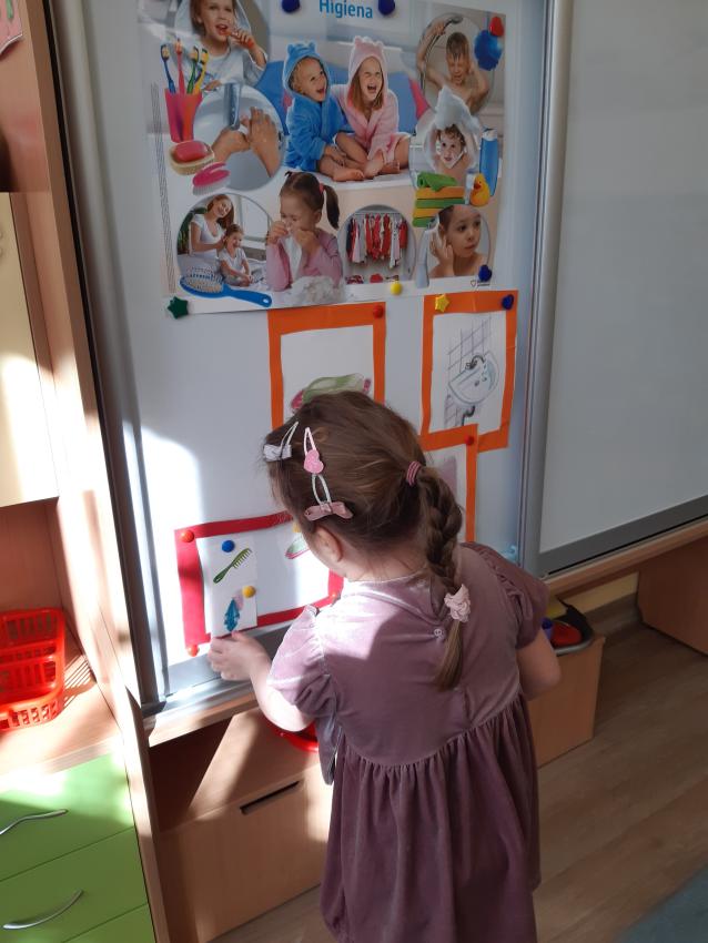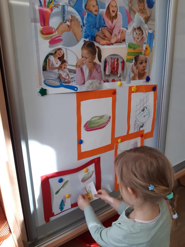 Rozwiązujemy zagadki ? rozpoznajemy przybory do higieny. Klasyfikujemy przedmioty. Przeliczamy w dostępnym zakresie. Obserwujemy i samodzielnie wykonujemy eksperyment ? co potrafi mydło? z wykorzystaniem naturalnych pomocy (mydło, woda ).