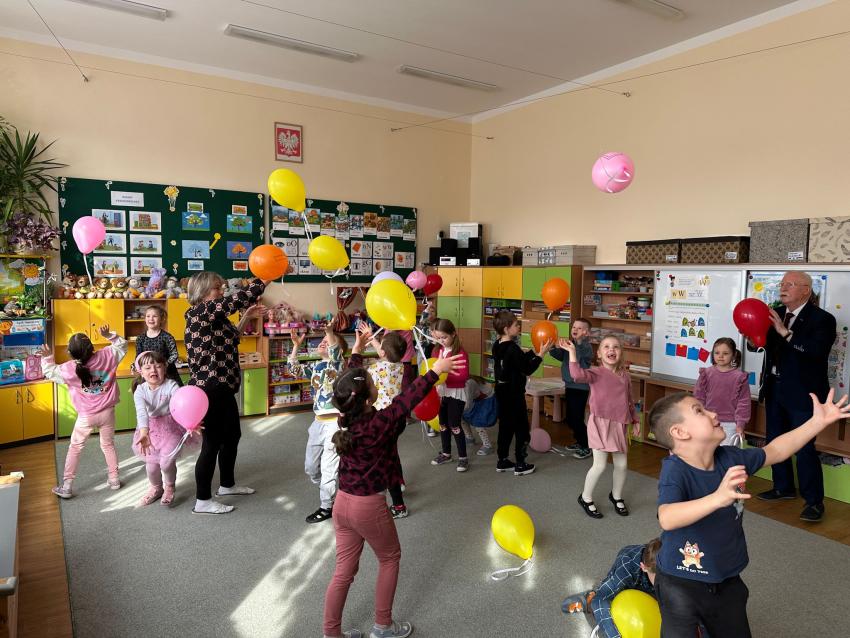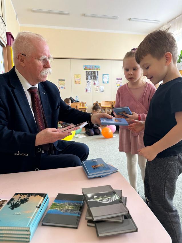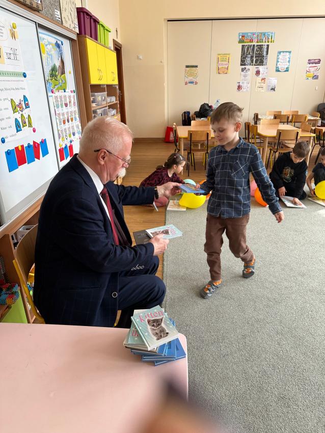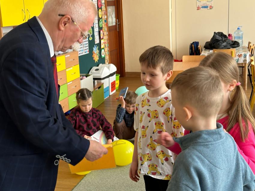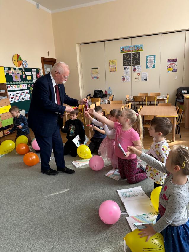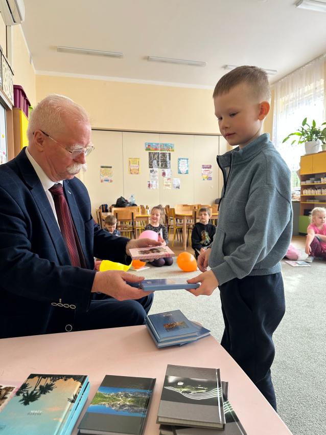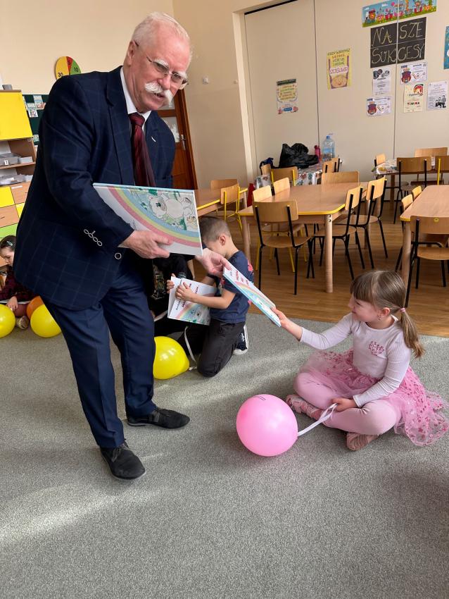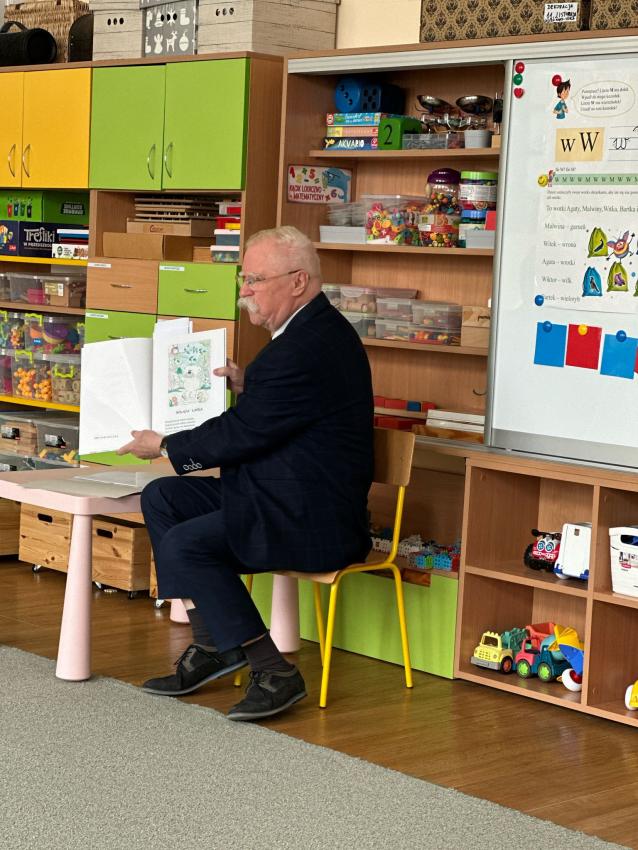 Dzisiaj w grupie Mróweczki odbyło sie spotkanie autorskie z Panem Antonim - autorem utworów dla dzieci w ramach współpracy z Klubem Seniora Plus. Na początku warsztatów nasz wspaniały Gość opowiedział dzieciom o swojeje wielkiej pasji - tworzenia dla dzieci i zaprezentował kilka wierszy swojego autorstwa. Pan Antoni przygotował wiele niespodzianek, każdego przedszkolaka obdarował napisaną przez siebie książeczką MASZEROWAŁ MISIU LASEM, notesikiem i długopisem, aby zachęcić małych artystów do tworzenia bajek. Następnie dzieci wybierały balony z literkami, aby wspólnie ułożyć tytuł tomiku wierszy Pana Antoniego. Przeszkolaki z zaciekawieniem oglądały upominiki. Na koniec były ogromne podziękowania za wkład w edukację najmłodszych i inspirująco przygotowane warsztaty.