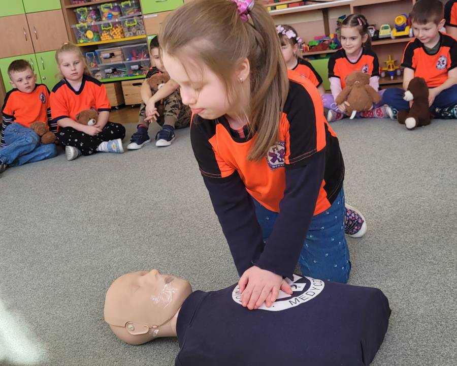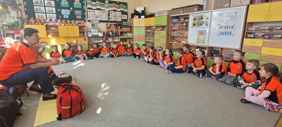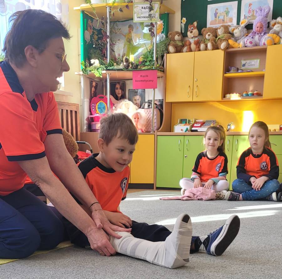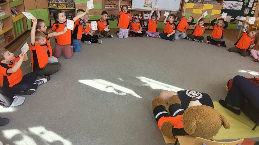 Dziś nasze przedszkole odwiedziła Pani, która na codzień pracuje jako ratownik medyczny. Dzieci z uwagą słuchały instrukcji i zasad udzielania pierwszej pomocy. Przedszkolaki wykonywały masaż serca, dowiedziały się jak ważne jest jedzenie w ciszy aby uniknąć zakrztuszenia czy jak radzić sobie z uszkodzeniem nogi czy kręgosłupa. Na zakończenie każdy otrzymał dyplom. To była cenna i interesująca lekcja.