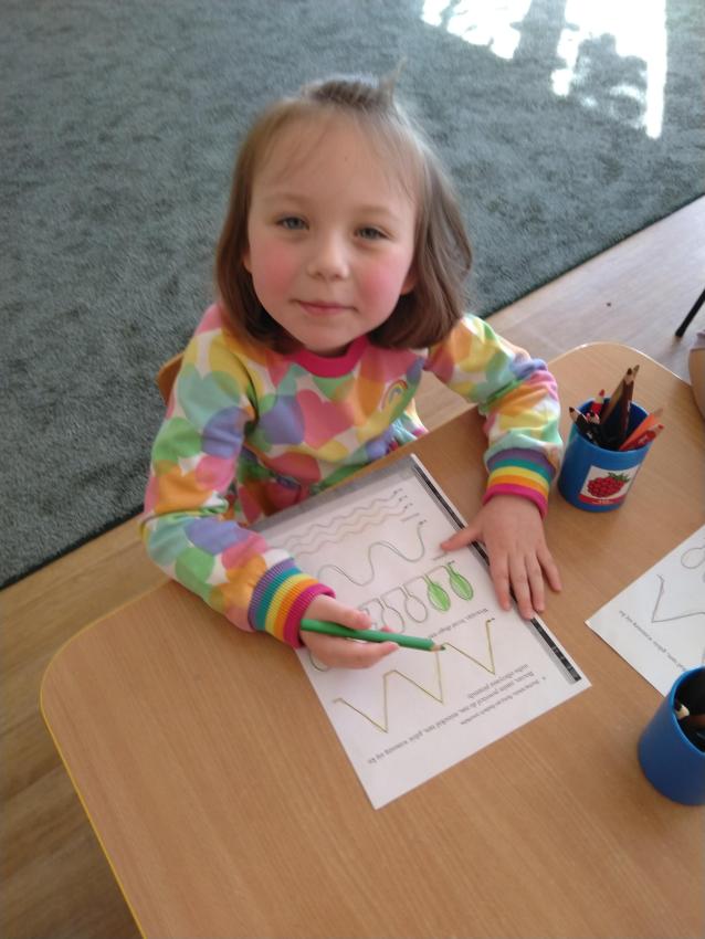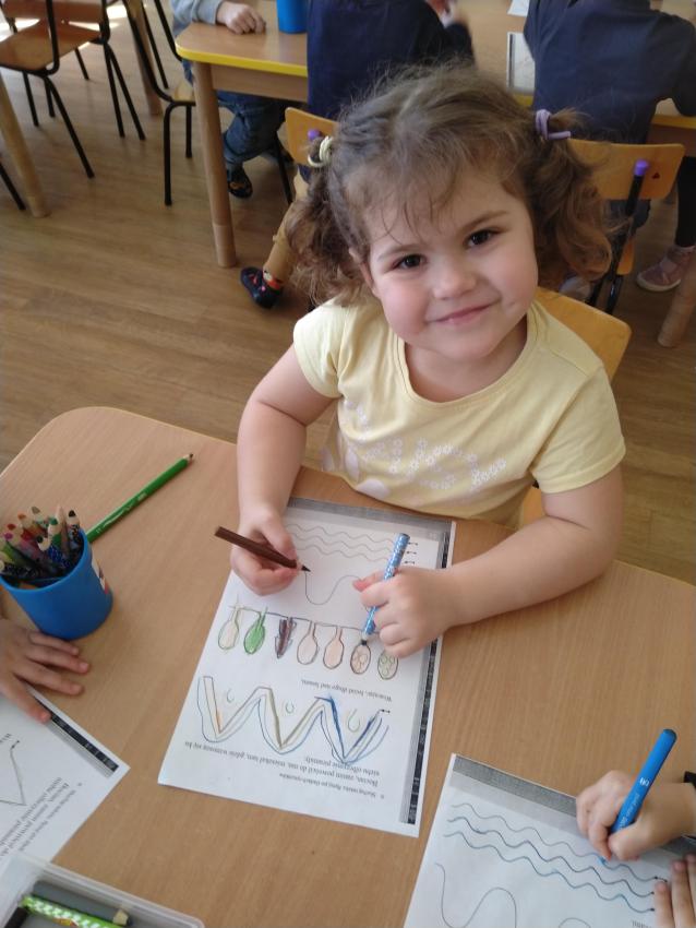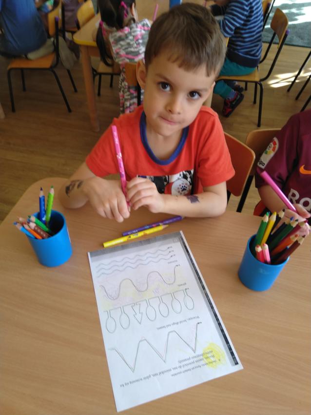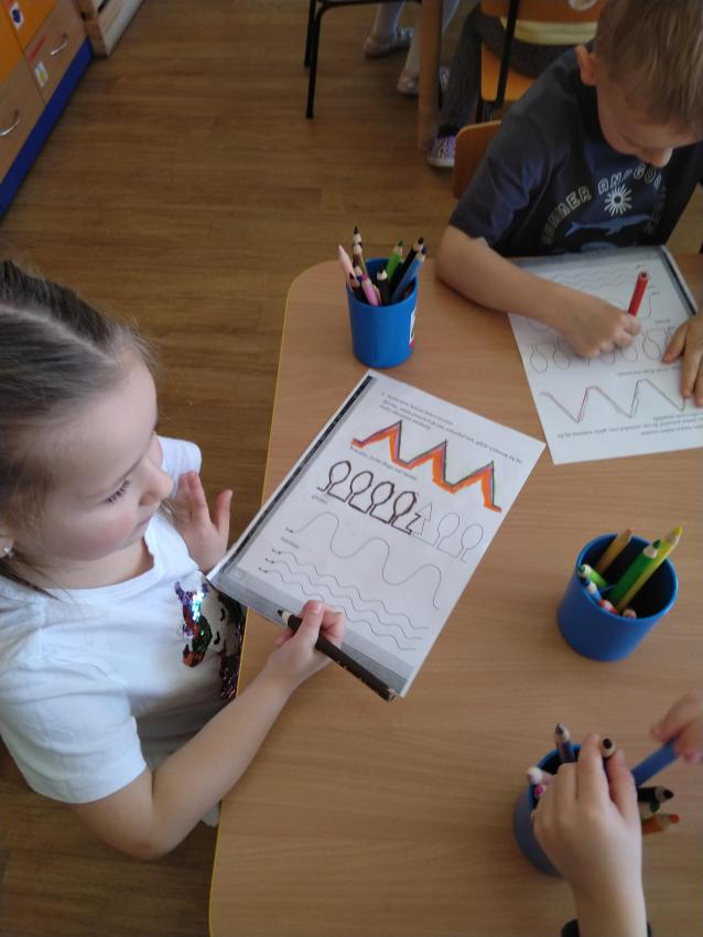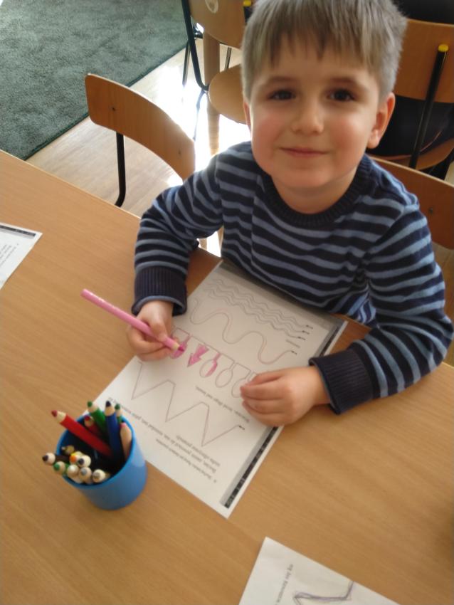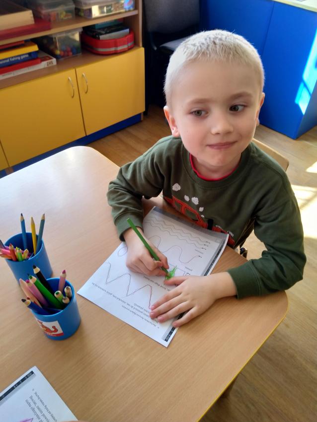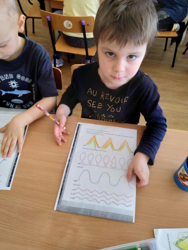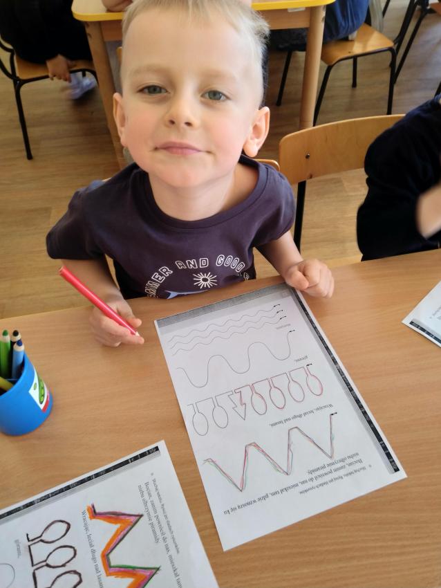 Rozwijamy sprawność dłoni podczas ćwiczeń graficznych.