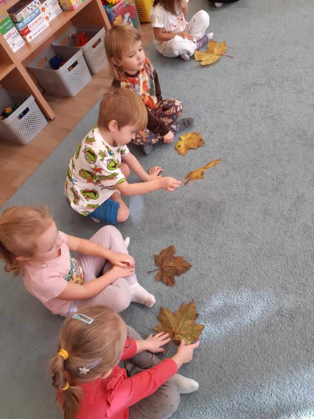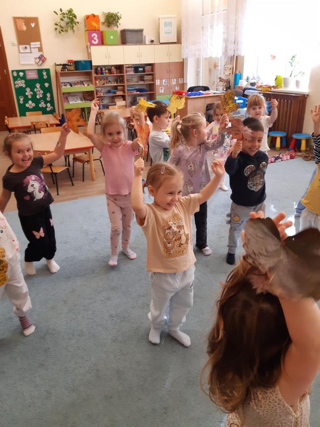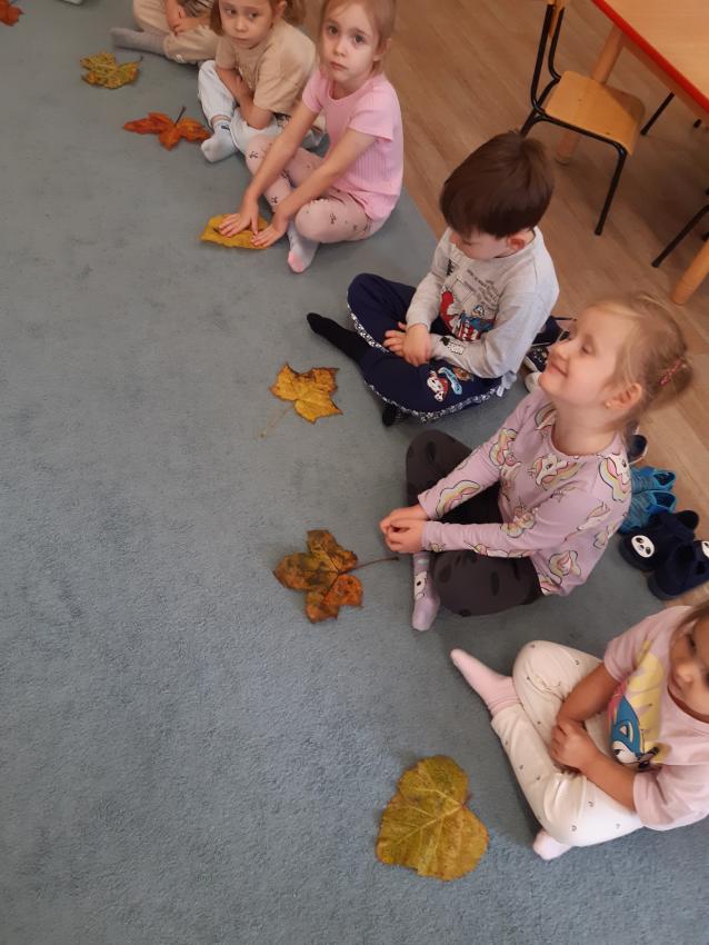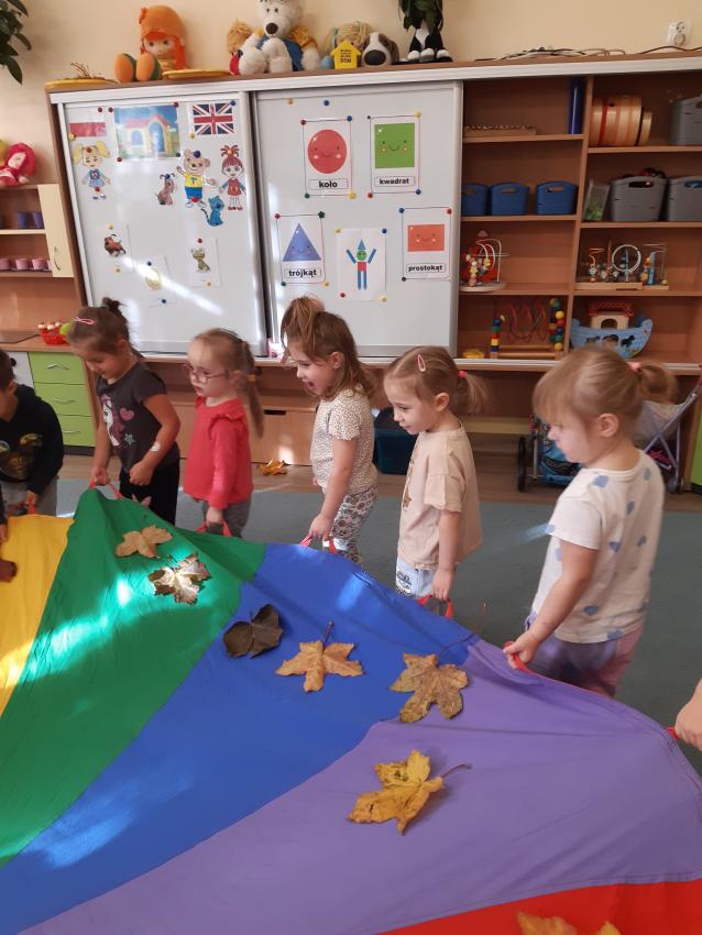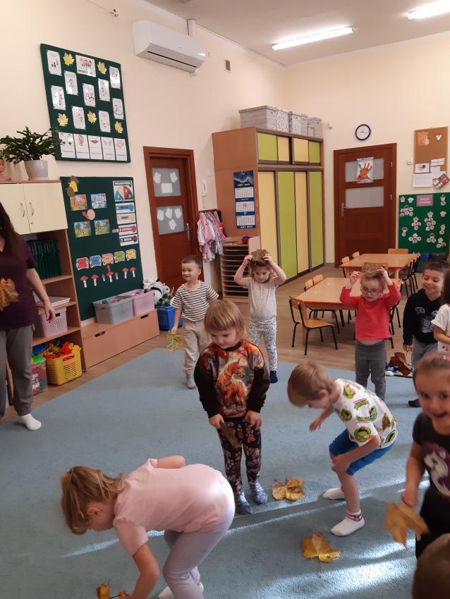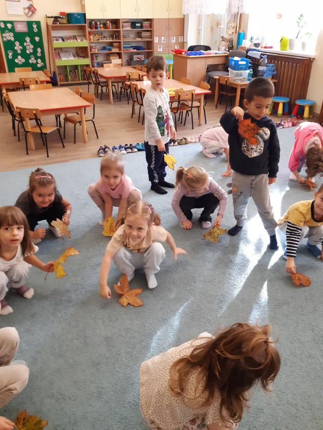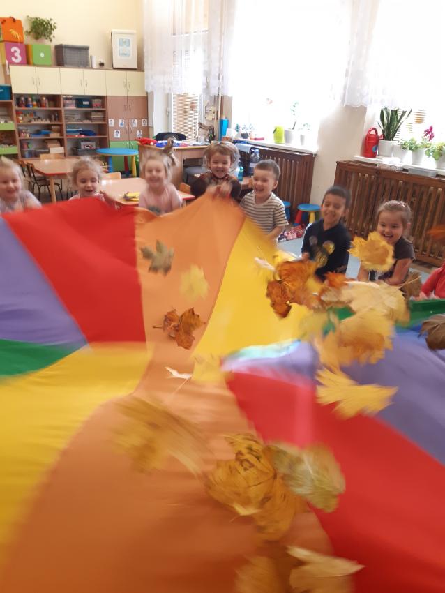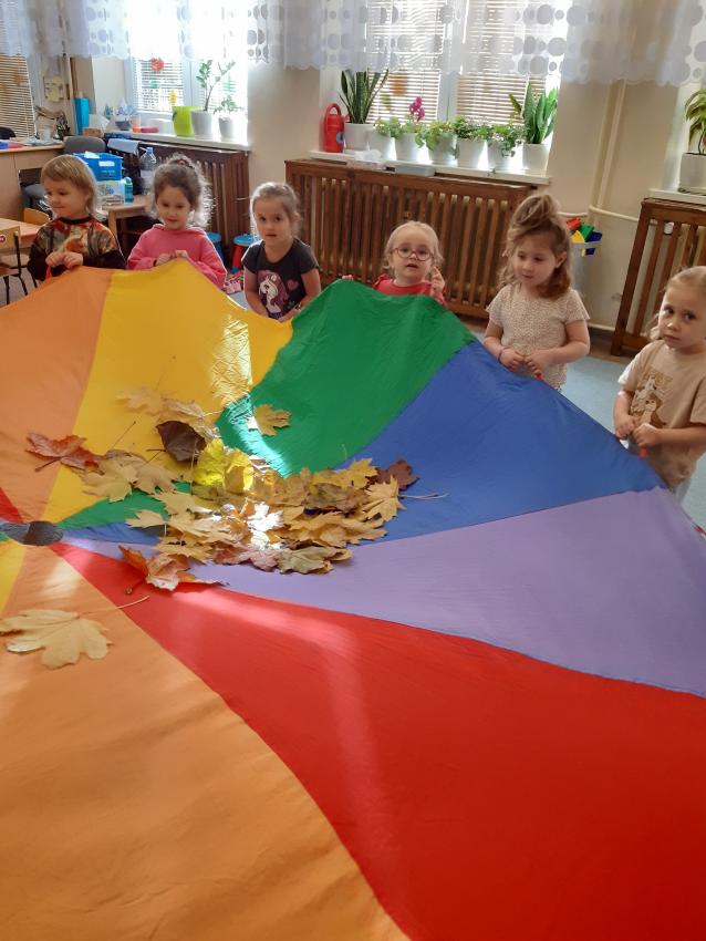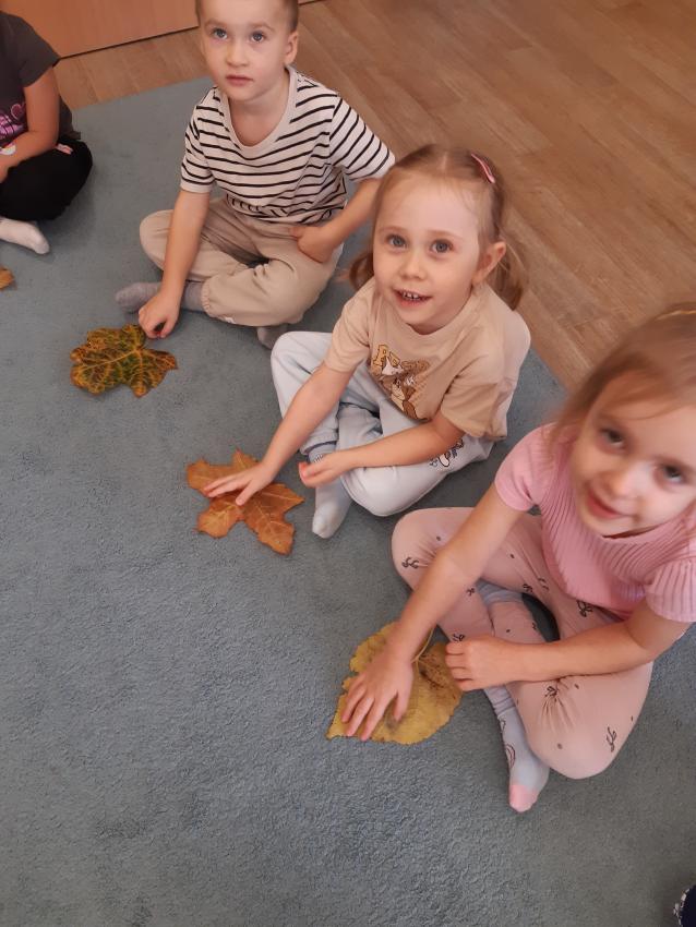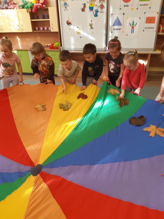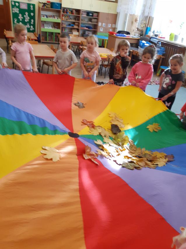 Podczas zabaw ruchowych i ćwiczeń gimnastycznych wykorzystaliśmy piękne naturalne jesienne liście .Dzieci poznały możliwości wykorzystania podczas zabaw tworzywa przyrodniczego- liści.Rozwijały umiejętności współdziałania , doskonaliły motorykę dużą i małą a najważniejsze świetnie się bawiły.