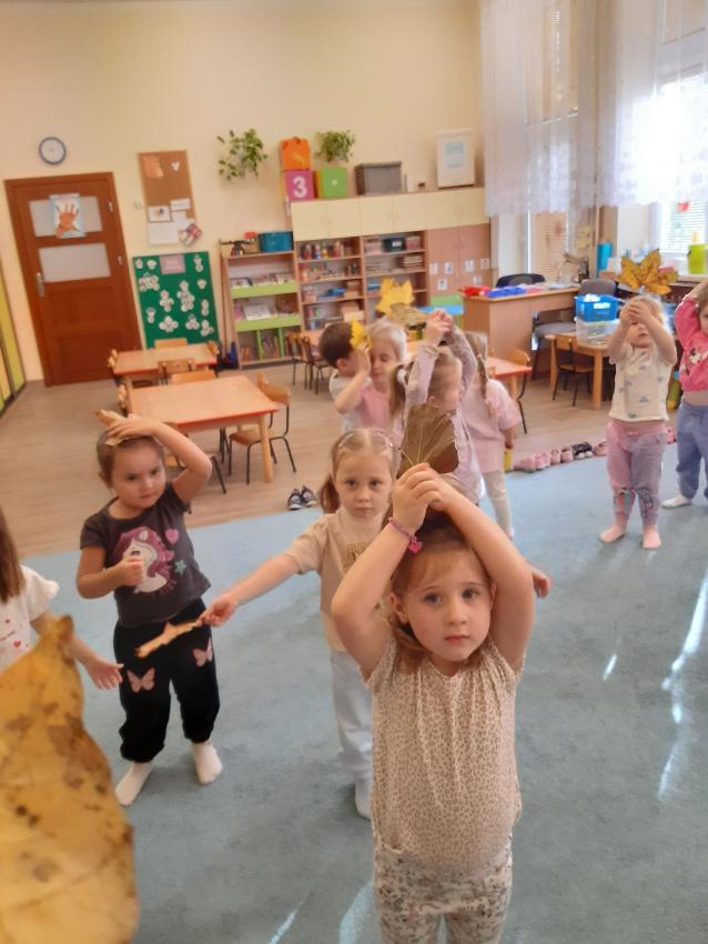 2025-10-30 PSZCZÓŁKI Zabawy ruchowe i ćwiczenia z jesiennym liściem.