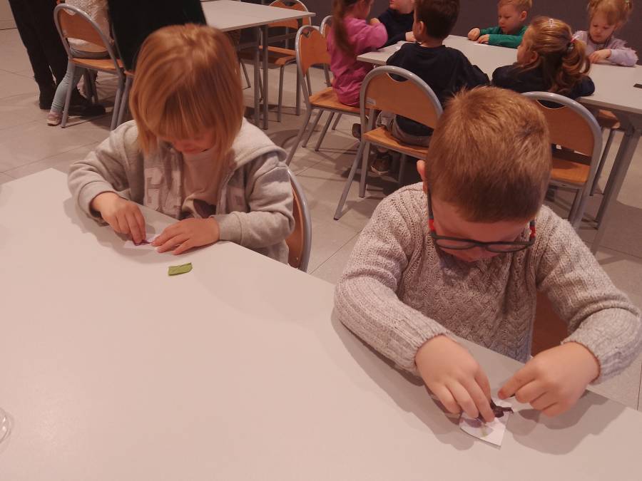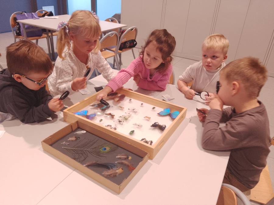Biedroneczki wzięły udział w warsztatach Kolorowy świat przyrody, podczas których miały okazję odkryć, czym różnią się kolory pigmentowe od strukturalnych i jakie mają znaczenie dla roślin i zwierząt.