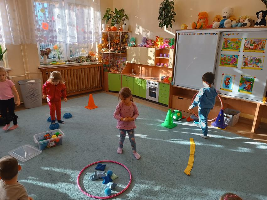 Także w jesienne dni Pszczółki pamiętają, aby dbać o zdrowie poprzez ruch, ćwiczenia i zabawy!