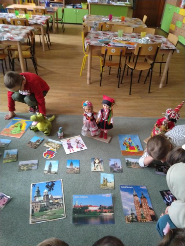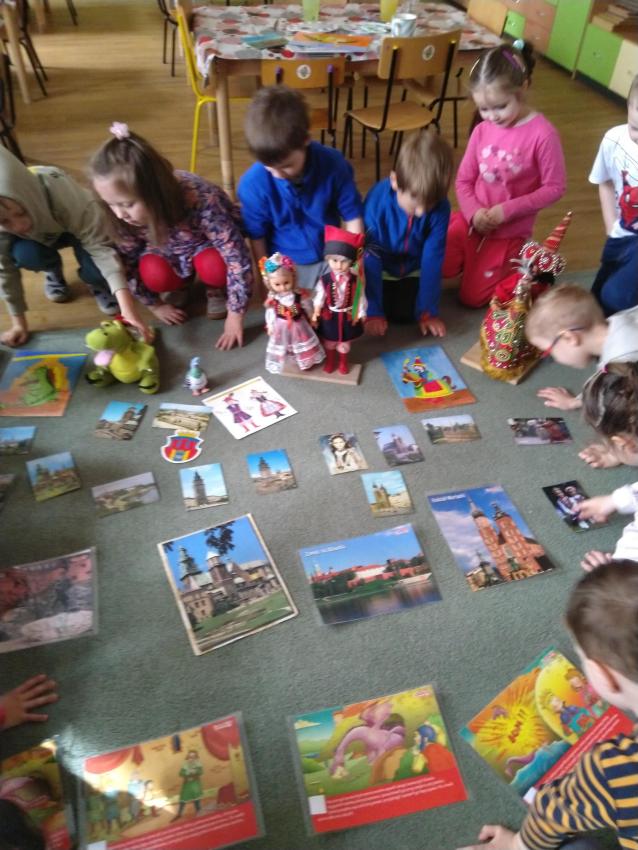 W tym tygodniu realizujemy temat o naszym rodzinnym mieście. Dzieci poznały legendy krakowskie, zabytki Krakowa, historię powstania miasta, symbole Krakowa takie jak: Lajkonik, smok wawelski, parę Krakowską. Malowały wianki krakowskie oraz poznały podstawowe kroki regionalnego tańca Krakowiaka. Buzie uśmiechnięte - humory dopisują.