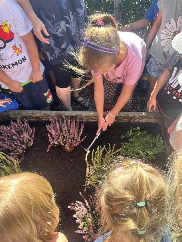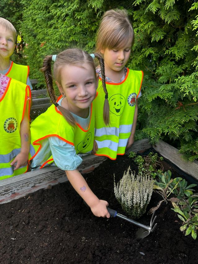 W promieniach jeszcze letniego słońca posadziliśmy wrzosy i cebulki wiosennych kwiatów. Będziemy dbać o nasze rośliny i obserwować ich wzrost na wiosnę.