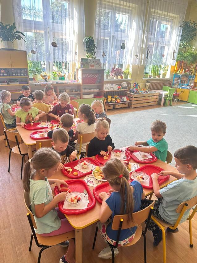 W nawiązaniu do przewodniego tematu tygodnia przeszkolaki samodzielnie przygotowały sałatkę owocową. Dzieci kroiły wybrane owoce według smakowych upodobań, tak aby w miseczce było i kolorowo i zdrowo!!!. Przypomnieliśmy o prozdowotnych własciwościach spożywania owoców i ich znaczenia dla rozwoju organizmu.