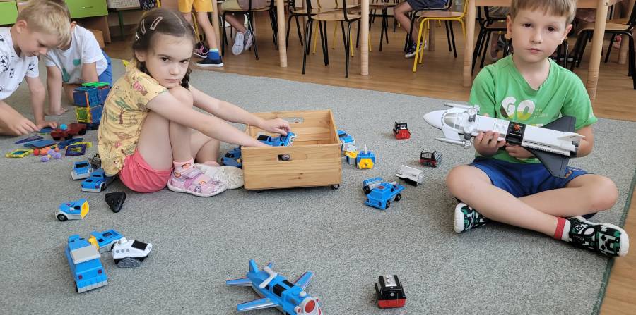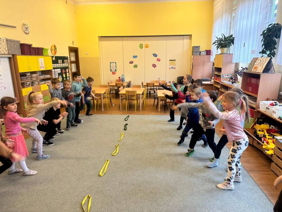 Przedszkolaki na zajęciach brały udział w doświadczeniu badawczym jak powstaje deszcz. Poprzez obserwację, krótką analizę wyciagnęły wnioski i poznały przebieg cyklu hydrologicznego na postawie przeprowadzonego doświadczenia. W ramach ruchu współpracowały w zabawie z chustą animacyjną. Na koniec zajęć w małych zespołach w zadaniu z kodowania rozwiijały logiczne myślenie i koordynację wzrokowo-ruchową.