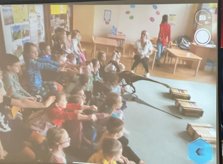 10 listopada w grupie Misiów odbyły się warsztaty przyrodnicze o historii dinozaurów i wykopaliskach paleontologicznych. Przedszkolaki poznały różne teorie na temat wyginięcia dinozaurów oraz najpopularniejsze gatunki tych stworzeń. Niespodzianką była wizyta dinozaurów na naszej sali, która wzbudziła wiele radości i ogromnych emocji. Dzięki Technologii Rozszerzonej Rzeczywistości multimedialna projekcja pozwoliła przenieść na ekran to co skrywa dzięcięca wyobraźnia. Zobaczcie sami!!!