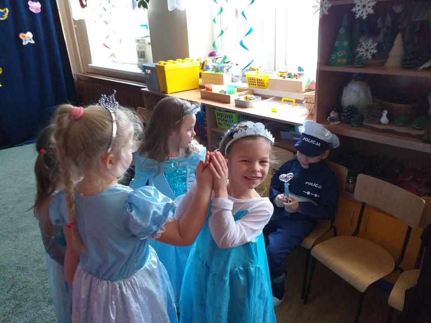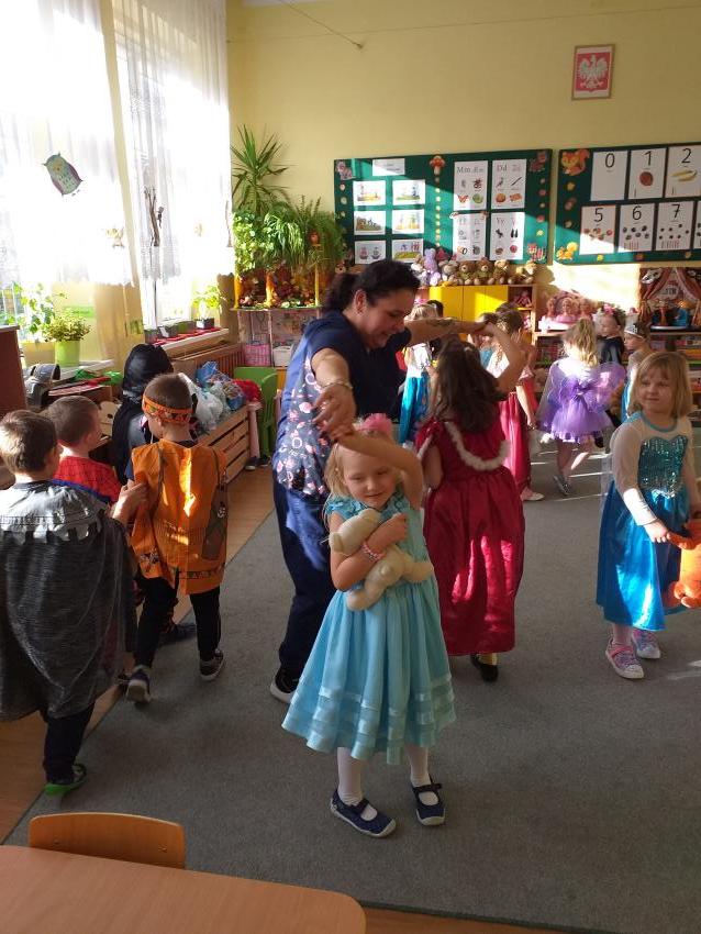 W dniu dzisejszym przedszkolaki ze wszystkich grup uczestniczyły w balu karnawałowym. Niesamowitą radość sprawiła dzieciom możliwość przebrania się w stroje i wcielania w różne postacie. Podczas balu dzieci brały udział w przygotowanych przez animatorkę zabawach i pląsach do znanych utworów tanecznych.