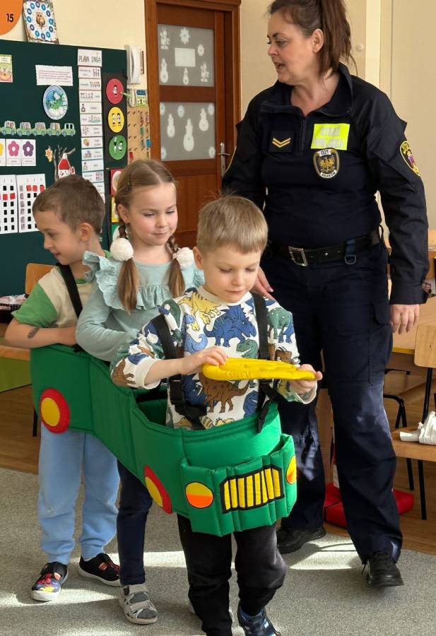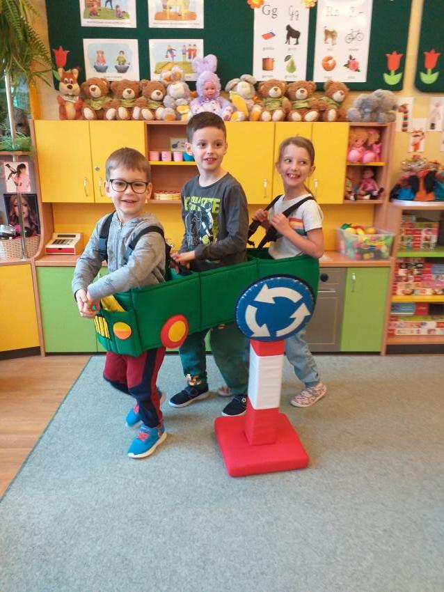 Przedszkolaki gościły dziś zaprzyjaźnionego z naszym przedszkolem Strażnika Miejskiego, który przypomniał zasady bezpiecznego poruszania się w ruchu drogowym, bezpiecznego spaceru po chodniku i przechodzenia przez jezdnię. Opowiedział również o znaczeniu najważniejszych znaków drogowych oraz podkreślił bardzo ważną rolę noszenia odblasków. Dzieci wykazały się sporą wiedzą na temat bezpieczeństwa na drodze oraz funkcji sygnalizacji świetlnej. Na koniec każdy uczestnik mógł przejechać trasę wokół ronda ?magicznym autobusem? i otrzymał książeczkę edukacyjną.