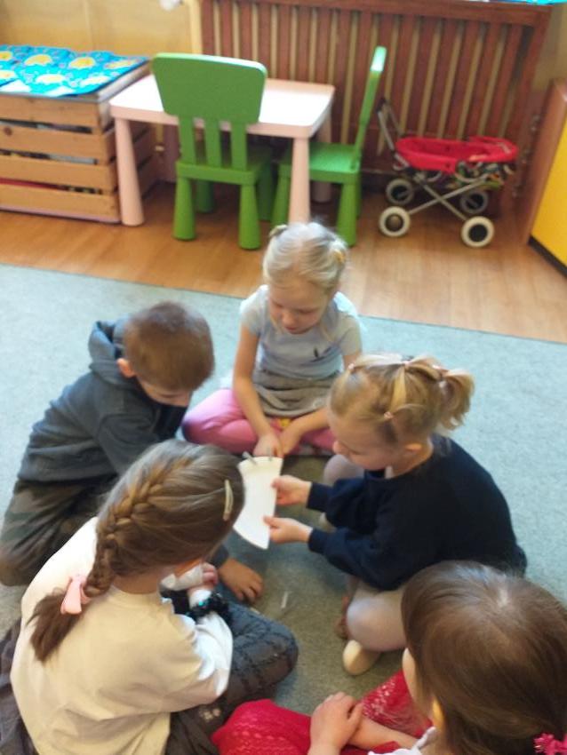 W dniu dzisiejszym naszą grupę odwiedziła Pani ze Straży Miejskiej. Dzieci wysłuchały na czym polega wykonywany przez nią zawód. Następnie utrwaliły zasady bezpieczeństwa podczas przechodzenia przez pasy oraz podstawowych znaki drogowe. Przedszkolaki brały także udział w zabawie ruchowej ,,Kierowca".