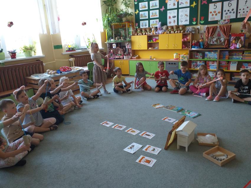Przedszkolaki uczestniczyły w zajęciach prowadzonych przez Panią Dorotkę, miłośniczkę pszczół. Dzieci poznały ciekawostki dotyczące życia pszczół i ich ogromne znaczenie dla przyrody i człowieka. Dowiedziały się również w jaki sposób pszczoły zapylają rośliny i skąd bierze się miód, poznały tajniki pracy pszczelarza. Na koniec Pani Dorotka, nasza logopeda zorganizowała zabawę logopedyczną z wykorzystaniem rolek papieru.