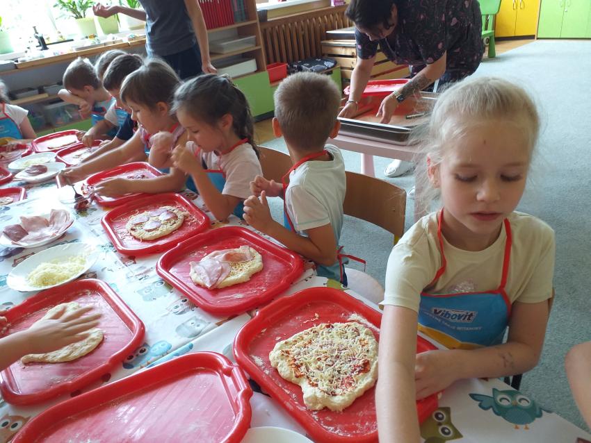 Przedszkolaki uczestniczyły w warsztatach prowadzonych przez tatę Poli, który pięknie opowiadał o kraju należącym do Unii Europejskiej - słonecznej Italii. Nasz Gość w prezentacji multimedialnej pokazał znane miasta i charakterystyczne zabytki nadmorskiego kraju. Dzieci nauczyły się kilku słów w języku włoskim. Następnie bardzo poprawnie odpowiadały na pytania w przygotowanym quizie. W drugiej części zajęć z dużą frajdą każdy wykonał pizzę w wybranymi przez siebie składnikami. Po upieczeniu w przedszkolnej kuchni przedszkolaki z apetytem degustowały pizzę. Zajęcia dostarczyły ogrom radości i dobrej zabawy.