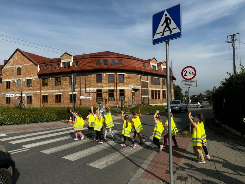 Przedszkolaki w czasie spaceru wokół terenu naszego przedszkola poznały zasady bezpiecznego przechodzenia przez ulicę. Samodzielnie nazywały napotkane znaki drogowe, które informowały o sposobie prawidłowego zachowania na drodze. Wszystkie dzieci z grupy Mróweczki wykazały się wiedzą z zakresu bezpiecznego poruszania się po jezdni i chodniku. Teraz możemy planować wycieczki.