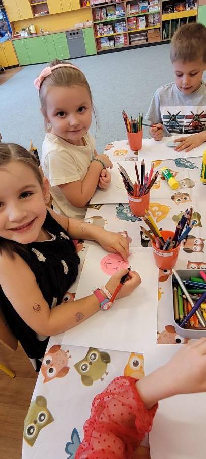Dziasiaj dzieci z grupy Mróweczki uczestniczyły w warsztatach kreatywnych w Klubie HARCOWNIA. Przedszkolaki po wysłuchaniu ciekawostek na temat życia różnych gatunków sów wykonały pracę plastyczną. Z bogato przygotowanych materiałów, z ogromną przyjemnością i zaangażowaniem tworzyły sowę według własnego pomysłu i jak się okazuje bardzo bogatej wyobraźni. Dzieci zadowolone z nowych doświadczeń i pełne wrażeń wróciły do przedszkola.