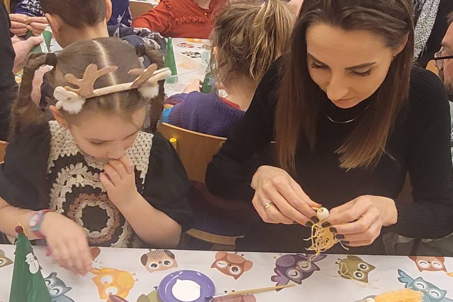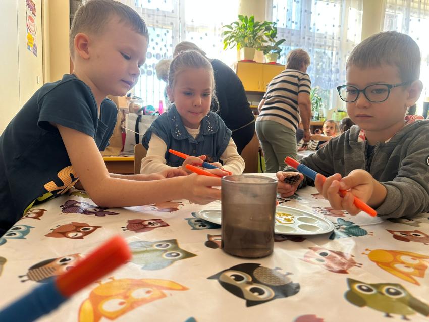 W dniu dzisiejszym w grupie MRÓWECZKI odbyły się warsztaty florystyczne prowadzone prze Panią Anię - florystkę przy współpracy z Paniami z Klubu Radosny Senior Plus. Przedszkolaki wykonywały kartki świąteczne z wykorzystaniem techniki malowania farbami akwarelowymi. Na uwagę załuguje samodzielność i kreatywność dzieci. Wszyscy pracowali w wielkim skupieniu, a uzyskane efekty będzie można zobaczyć też w naszej galerii grupowej.