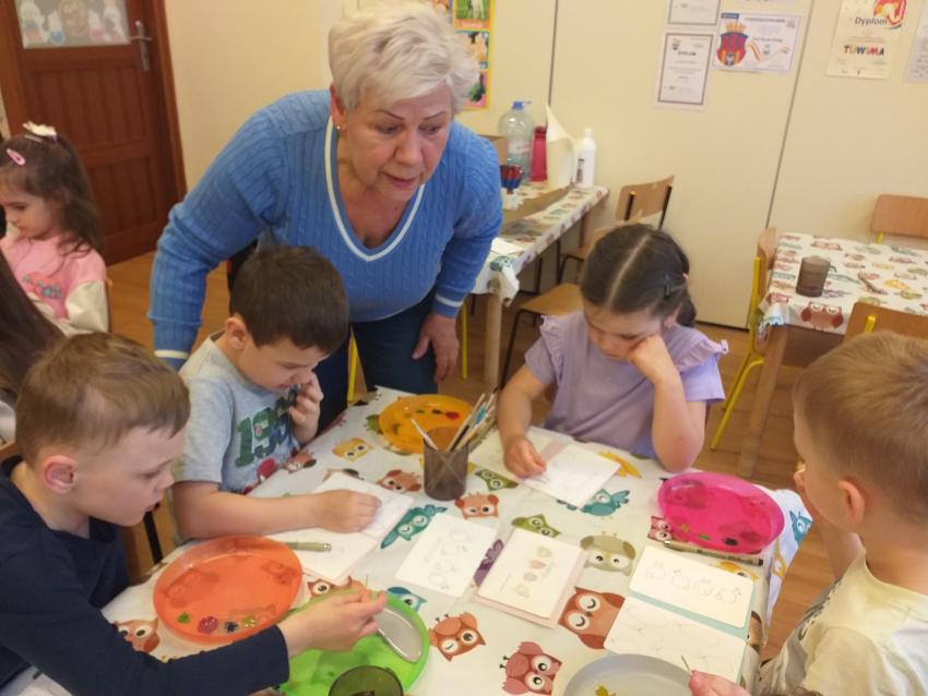 Dzisiaj na zajęciach plastycznych przedszkolaki z grupy Mróweczki tworzyły portret Babci i Dziadka. Inspirowane do działań według własnego pomysłu rozwijały umiejetność wykorzystania różnych technik plastycznych. Dzieci z dużą rodością i zaangażowaniem wykonały portrety swoich dziadków, które można oglądać w naszej galerii.