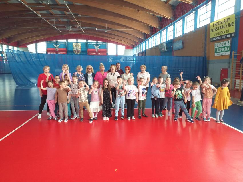 Przedszkolaki z grupy Mróweczki uczestniczyły w zajęciach Zumby w ramach współpracy z Klubem Radosny Senior Plus. Dzieci miały okazję spędzić aktywnie czas z Seniorami w miłej atmosferze pod okiem świetnego trenera Sergia. Wszyscy świetnie się bawili, uśmiechy nie znikały z twarzy, a dobra kondycja towarzyszyła wszystkim uczestnikom Zumby.