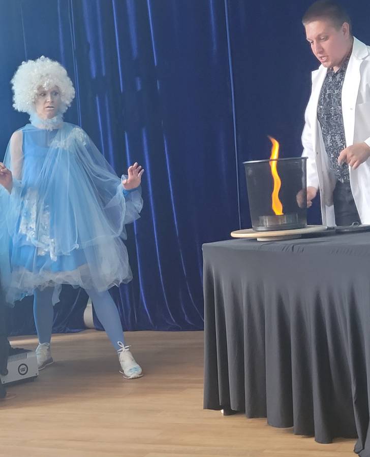 W dniu dzisiejszym najstarsze grupy V i VI uczestniczyły w pokazie chemiczno - eksperymentalnym zorganizowanym przez Teatr Kuriozum. Nasza sala na godzinę zamieniła się w prawdziwe laboratorium. Dzieci utrwaliły wiadomości na temat powietrza oraz jego zanieczyszczeń. Mieliśmy także okazję obserwowa doświadczenia z wodą, w różnych stanach skupienia. Nie zabrakło także doświadczeń z ogniem oczywiście bezpiecznych dla wszystkich uczestników. Największym zainteresowaniem dla dzieci okazał się spektakularny ciekły azot. Dziękujemy serdecznie mamie i babci Zuzi z III grupy za zorganizowanie pokazu. To było niesamowite przeżycie.