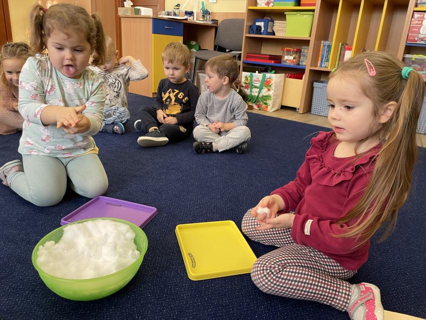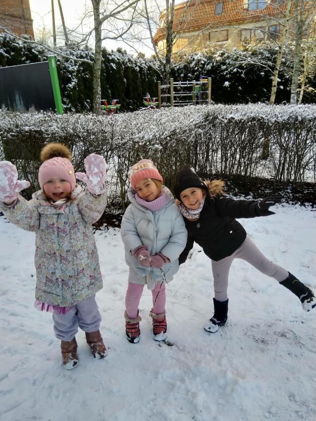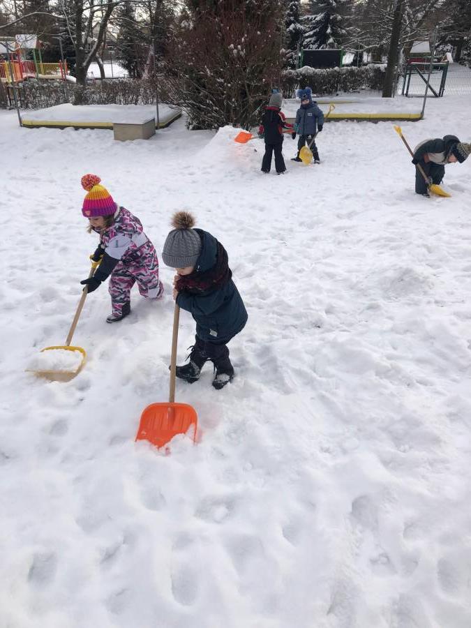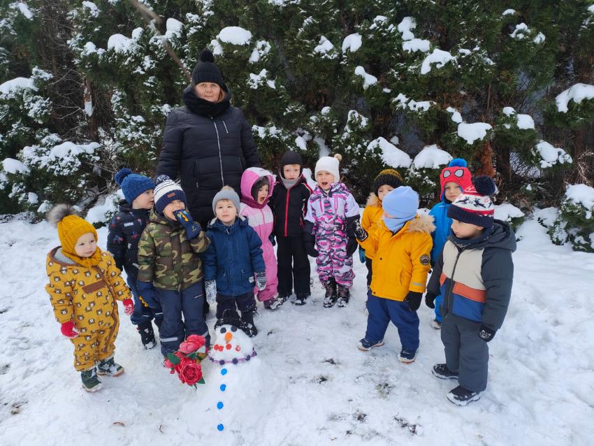 Jeśli pozwala na to temperatura i jakość powietrza staramy się organizować dzieciom zajęcia w ogrodzie. Wspólne lepienie bałwana to wspaniały sposób na integrowanie grupy wokół wspólnego celu oraz rozwijanie umiejętności współpracy.