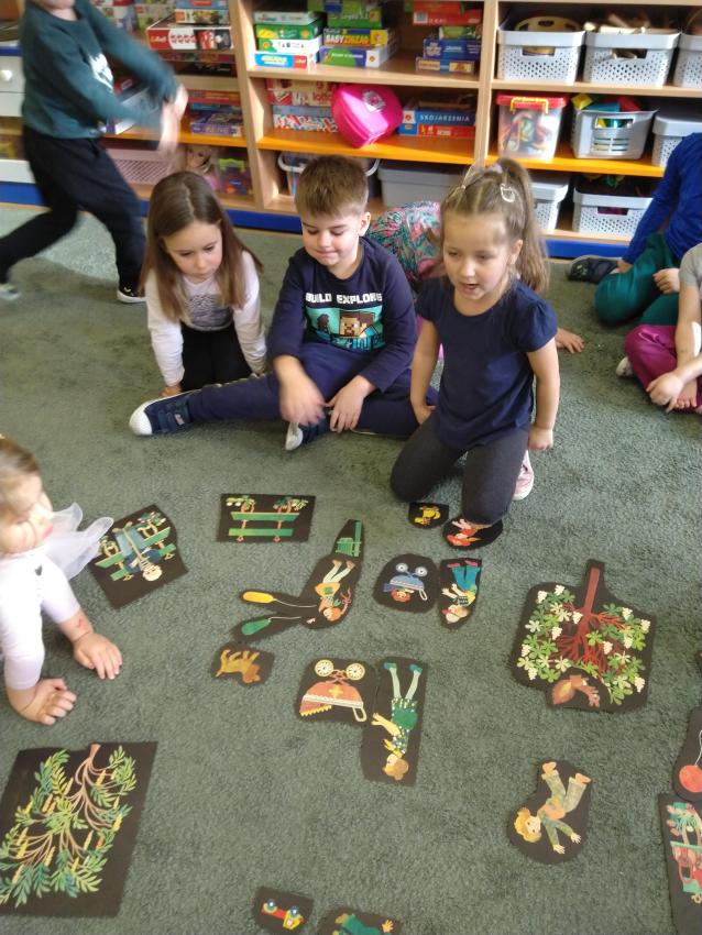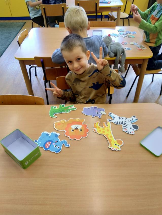 Dzisiaj podczas zabaw matematycznych dodawaliśmy i odejmowaliśmy na konkretach. Na koniec z ulubionym kolegą układaliśmy wspólnie jeden obrazek, uczymy się współpracować z rówieśnikami.