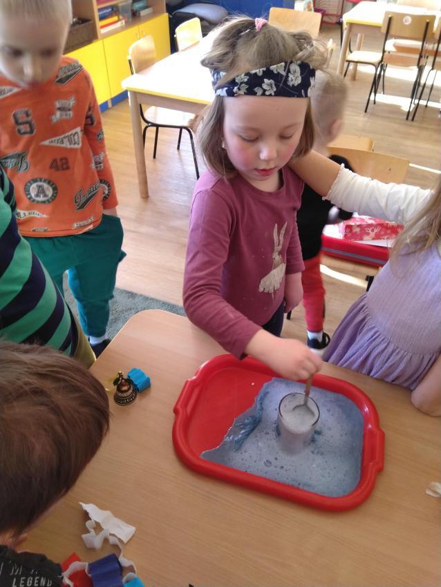 Dzisiaj eksperymentowaliśmy z kolorami i zobaczyliśmy, jak powstają barwy pochodne od barw podstawowych. To było super! Ale najlepsze miało dopiero nadejść. Udało nam się wywołać kolorowe wulkany. To było ekstra!!!