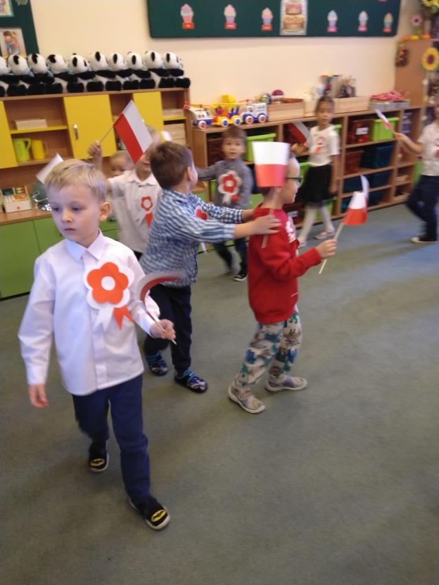 Dzieci z grupy Pingwinków uczciły Święto Niepodległości. Z tej okazji przygotowały kotyliony w barwach narodowych. Wzięły udział w akcji ?Szkoła do hymnu? : uroczyście zaśpiewały hymn Polski. Obejrzały piękny program artystyczny przygotowany przez straszaków. To był wyjątkowy dzień.