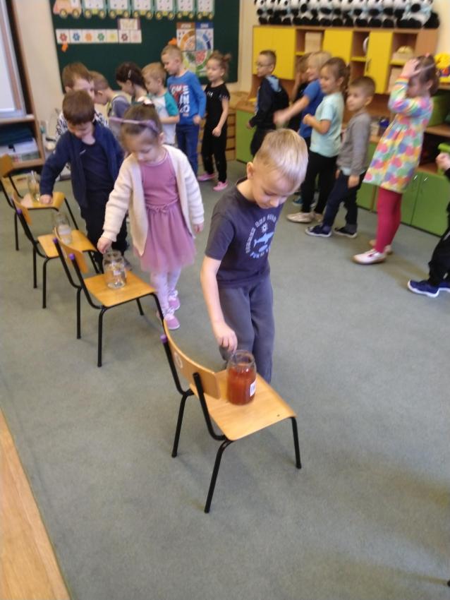 Dzieci z grupy Pingwinków wykonywały doświadczenie: co rozpuszcza się w wodzie? Podczas zajęć dydaktycznych podzieliły się swoją wiedzą na temat wody: skąd się bierze woda? do czego jest potrzebna? jak możemy ją oszczędzać? Następnie wykonały pracę plastyczną ?Wesoły parasol?.  Był to dzień pełen przeżyć.