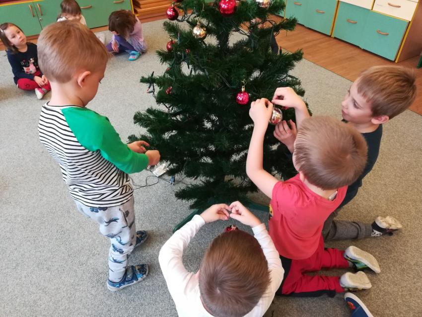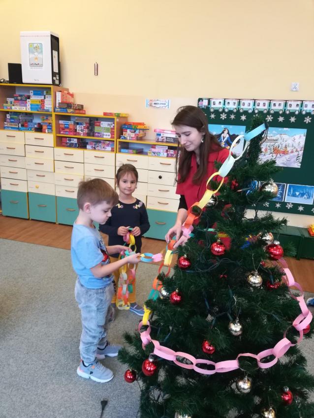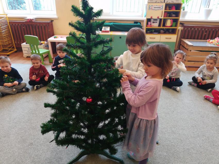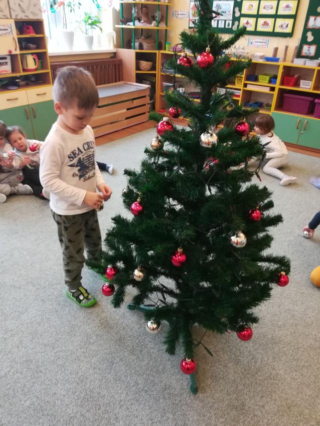 W tym dniu grupa Motylków wspólnie ubierała choinkę. Już pięknie przystrojona stoi w naszej sali :)