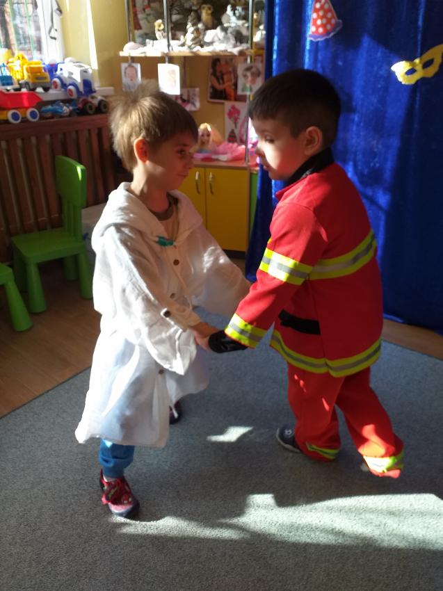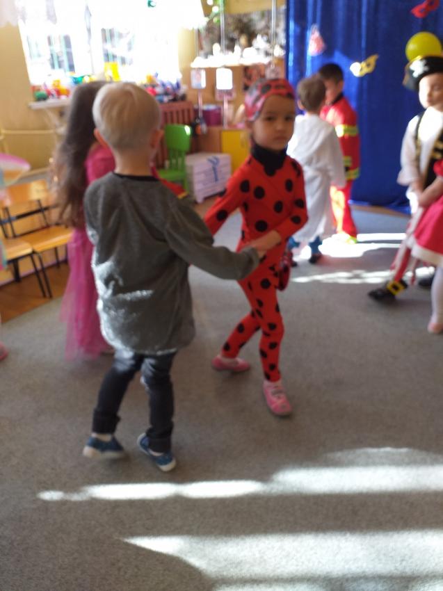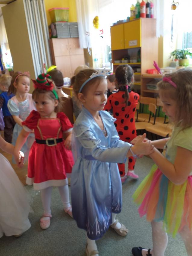 Przedszkolaki z radością wcielały się w wybrane przez siebie postacie. Z wielkim zaangażowaniem uczestniczyły w tańcach i zabawie przy skocznej muzyce.