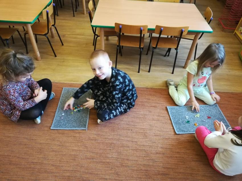 Motylki wykonywały ćwiczenia i zadania matematyczne w parach, rozwijając umiejętność współpracy :)