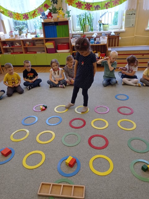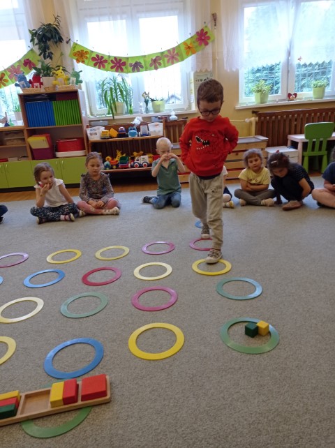 Zabawy w kodowanie w prosty i przyjazny dziecku sposób wprowadzają dzieci w świat, który rozwija logiczne myślenie i uczy dedukcji. Dzieci stopniowo oswajają się z nowymi pojęciami, kształcą umiejętność planowania i współpracy w zespole. Podczas dzisiejszej zabawy dzieci planowały trasy, którymi można było dojść do wybranych klocków- figur.